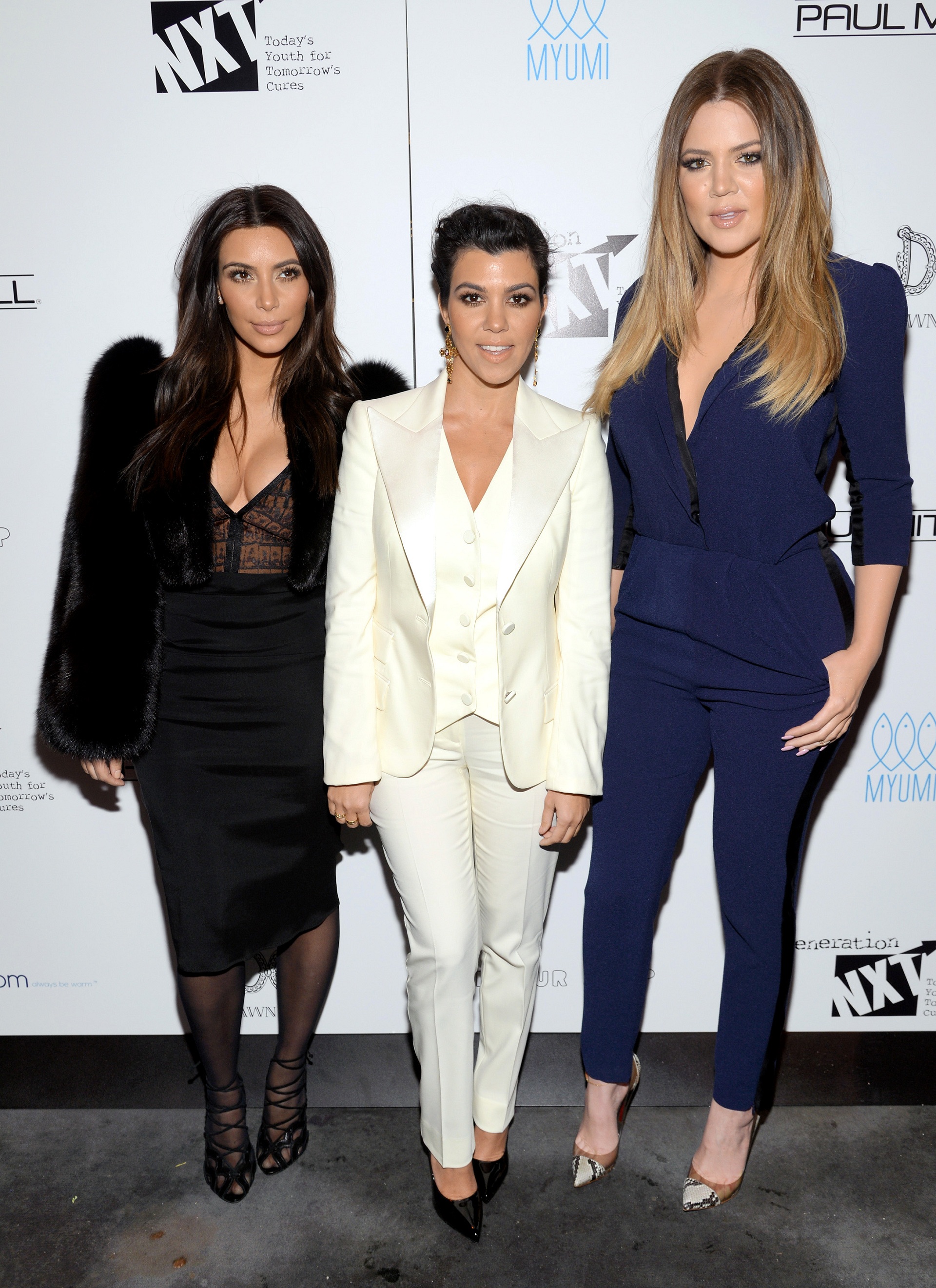 Television personalities Kim Kardashian, left, Kourtney Kardashian and Khloe Kardashian Odom, right, attend a Generation NXT Dream Foundation benefit event at 1 Oak on Sunday, Feb. 16, 2014, in New York. (Photo by Evan Agostini/Invision/AP)