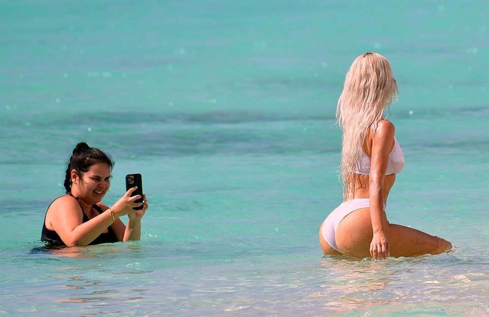 Kim Kardashian Booty in Transparent Wet Bikini on a Beach in Turks and Caicos