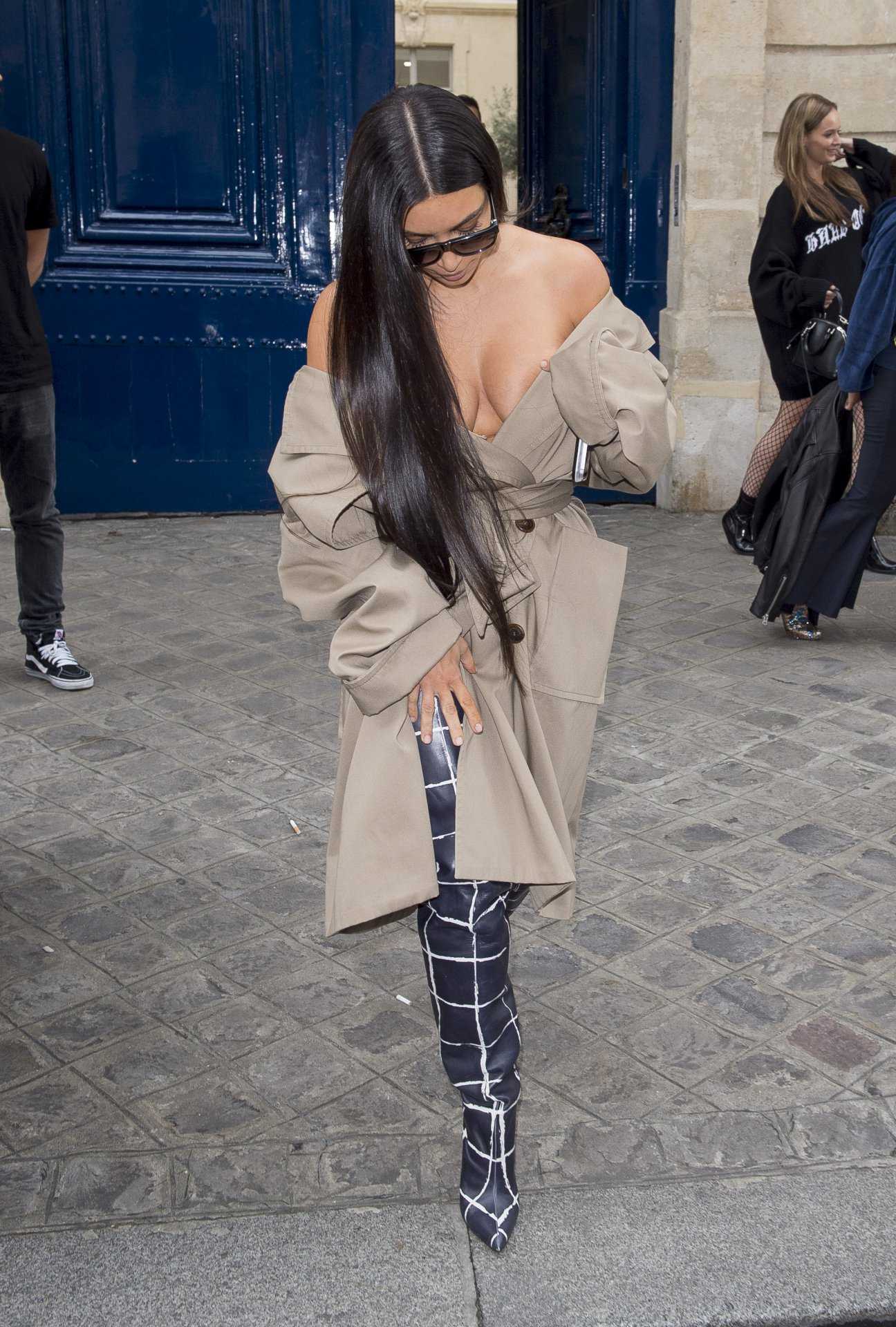 Kim Kardashian Cleavage at “Balenciaga” Fashion Show in Paris