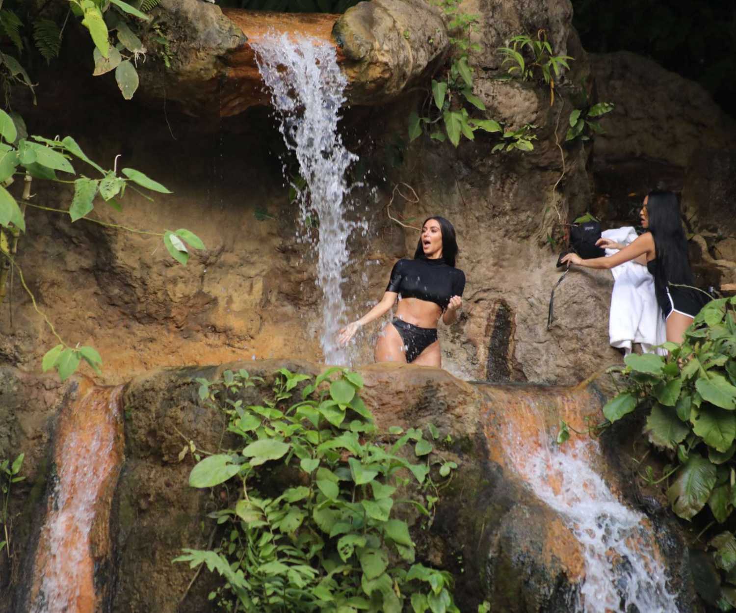 Kim Kardashian in Bikini Bottoms under Fountain in Costa Rica