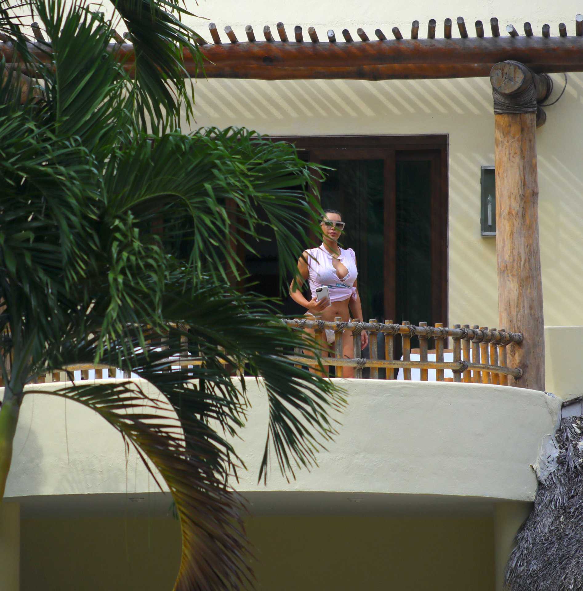 Kim Kardashian in White Bikini at a Pool in Mexico
