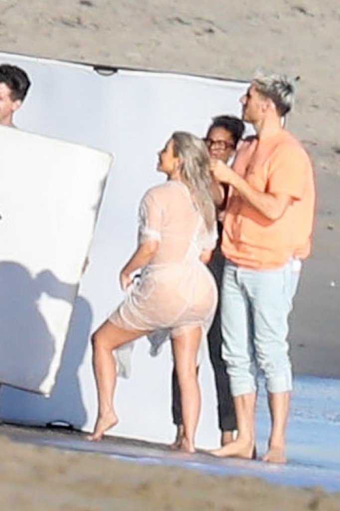 Kim Kardashian See-Through Photoshoot Candids in Malibu