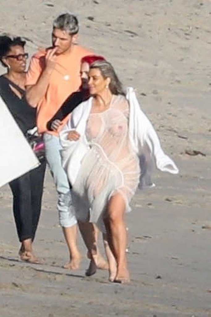 Kim Kardashian See-Through Photoshoot Candids in Malibu