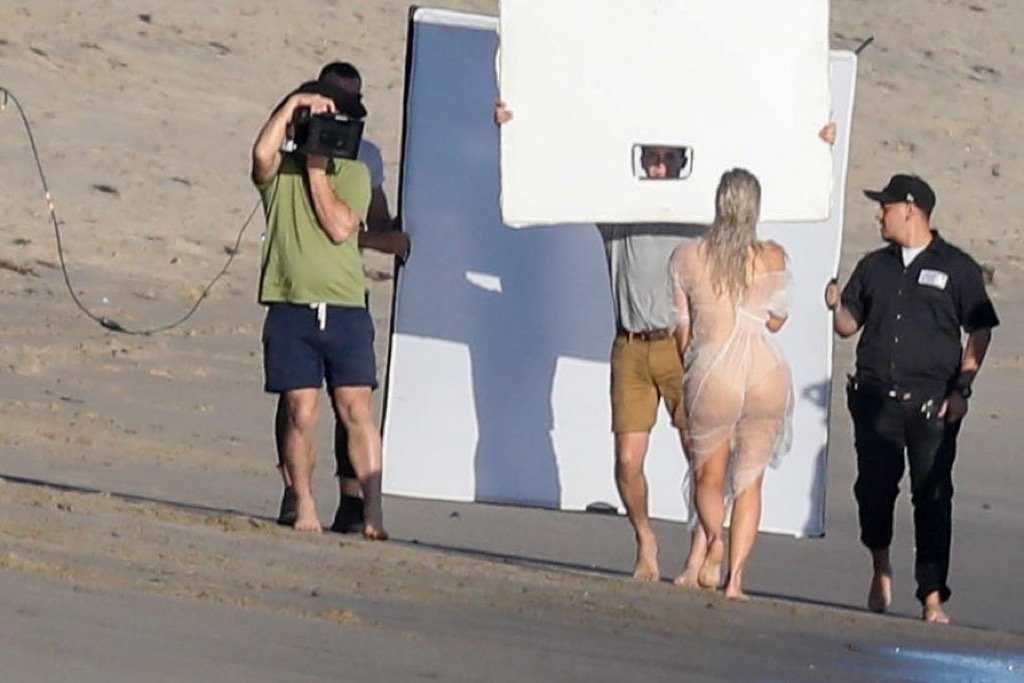 Kim Kardashian See-Through Photoshoot Candids in Malibu