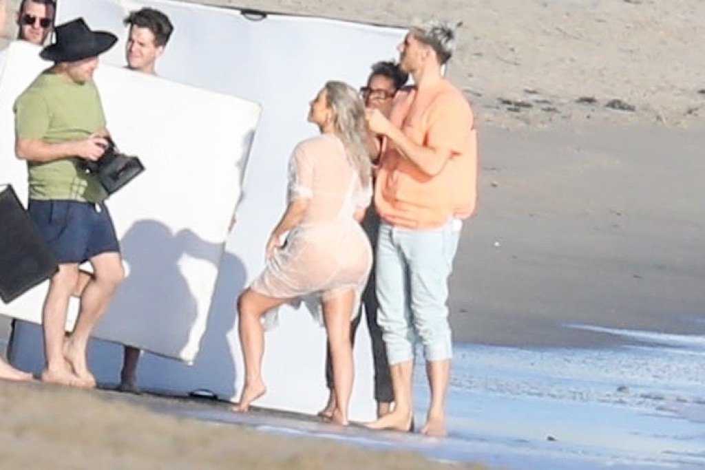 Kim Kardashian See-Through Photoshoot Candids in Malibu