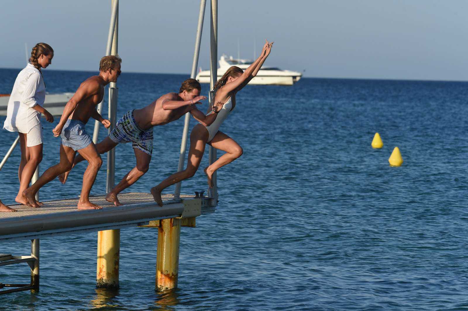 Kimberley Garner Booty in White Swimsuit at the Beach in Saint Tropez