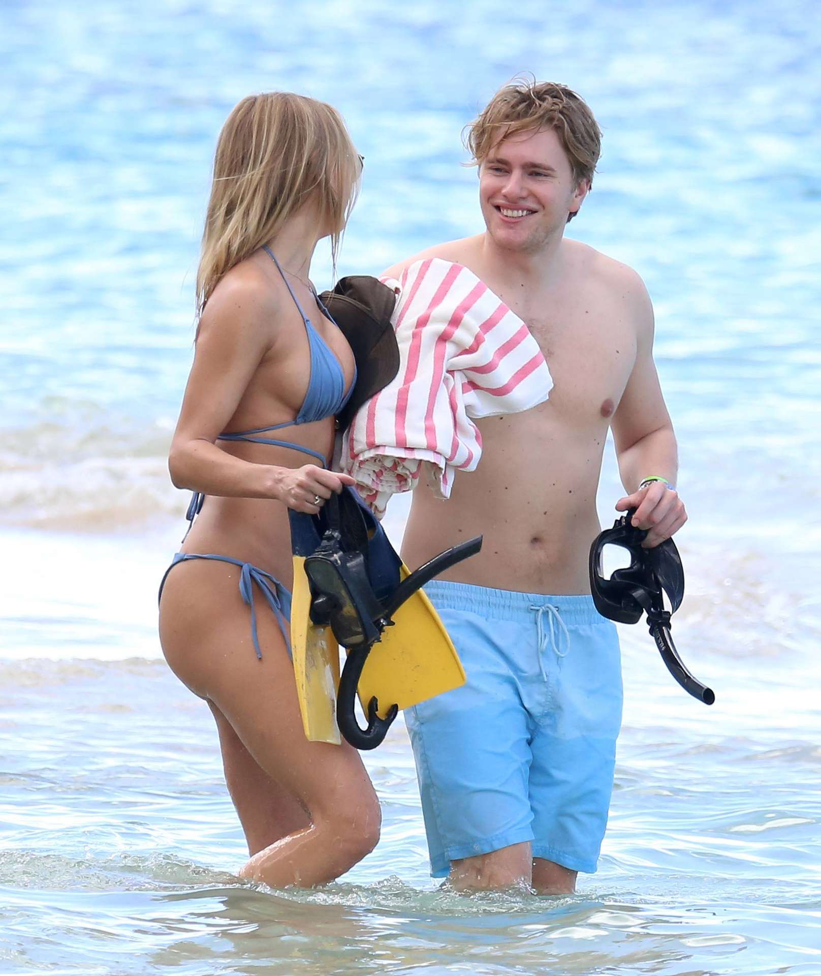 Attached to: Kimberley Garner Cleavage in a Tiny Blue Bikini at the Beach in Barbados