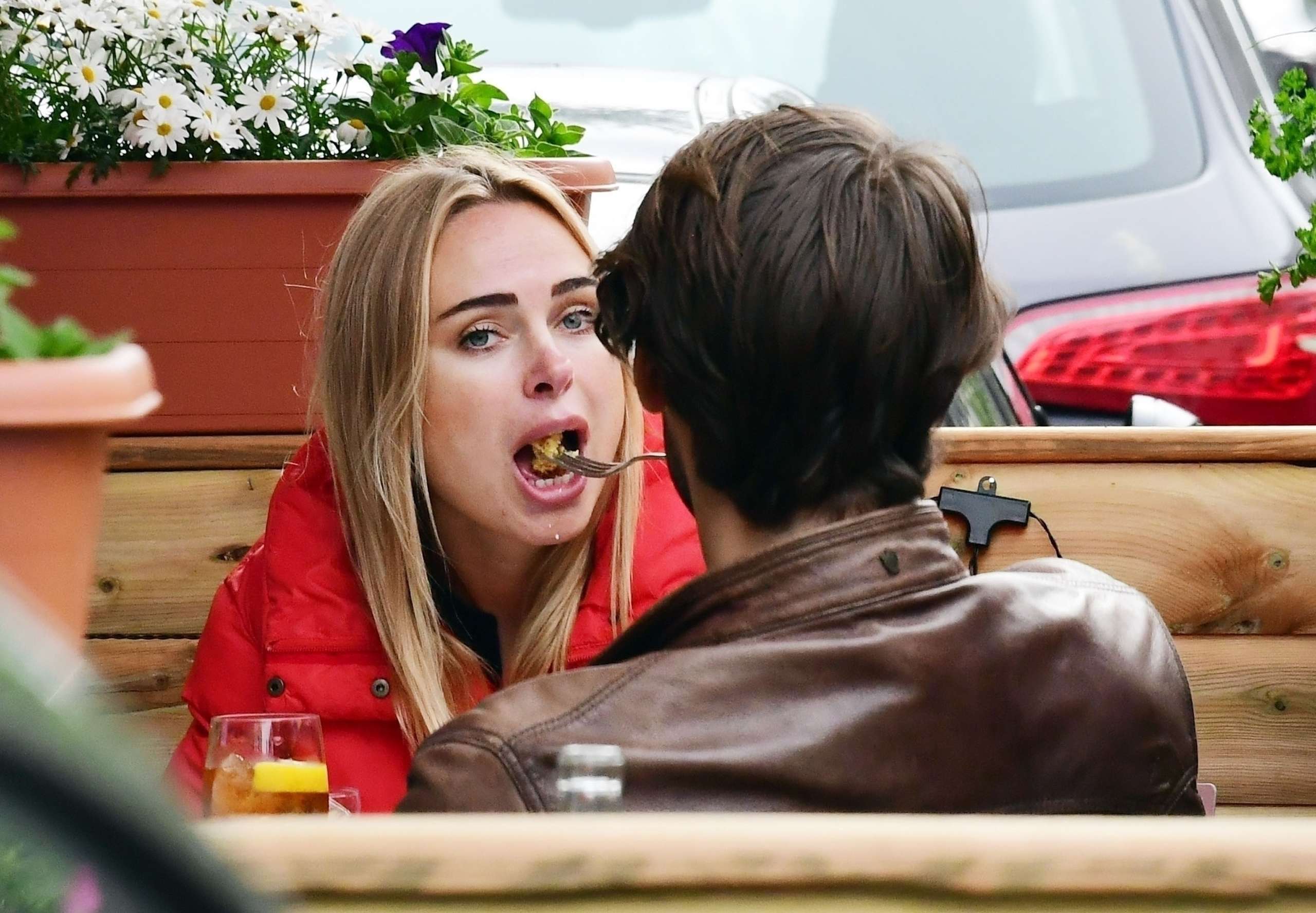 It would seem Kimberley is quite smitten with her mystery friend linking arms as the pair stopped off for some al fresco style lunch with Kimberley forking out for the bill.
