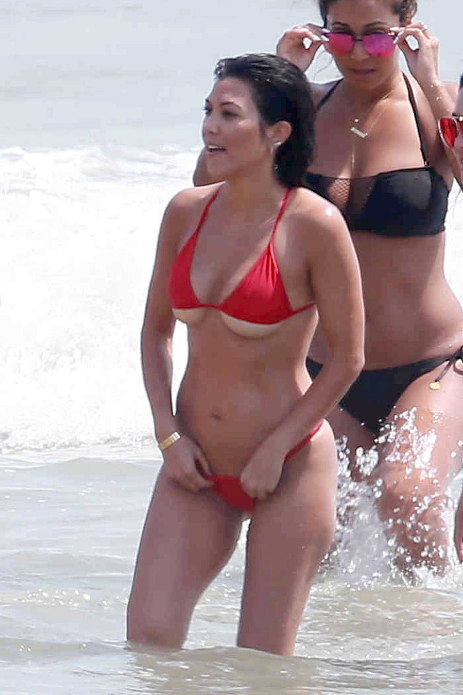 Attached to: Kourtney Kardashian Underboob in Red Bikini at Beach in Tulum