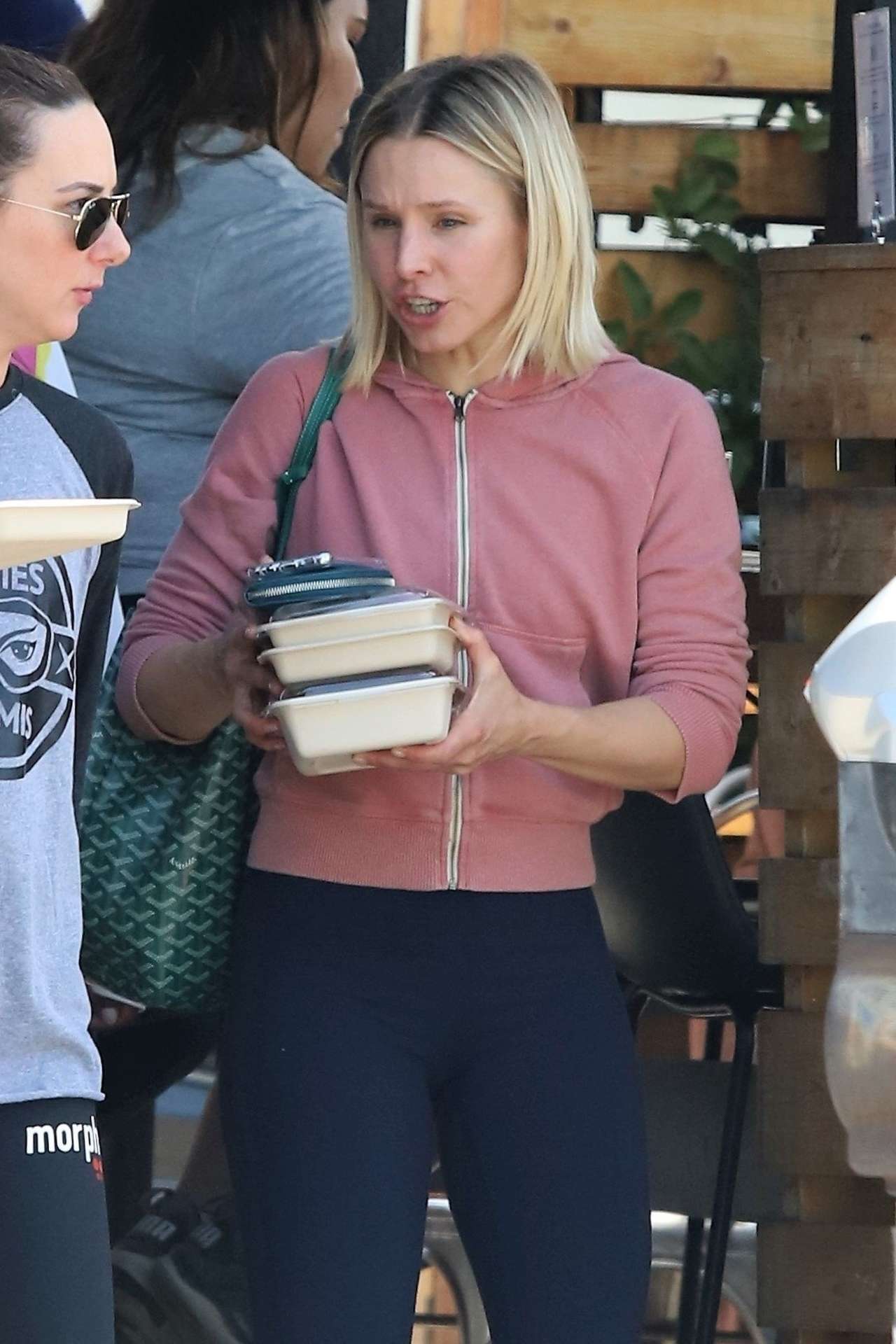 Kristen Bell leaves lunch in Los Angeles with a stack of to-go plates