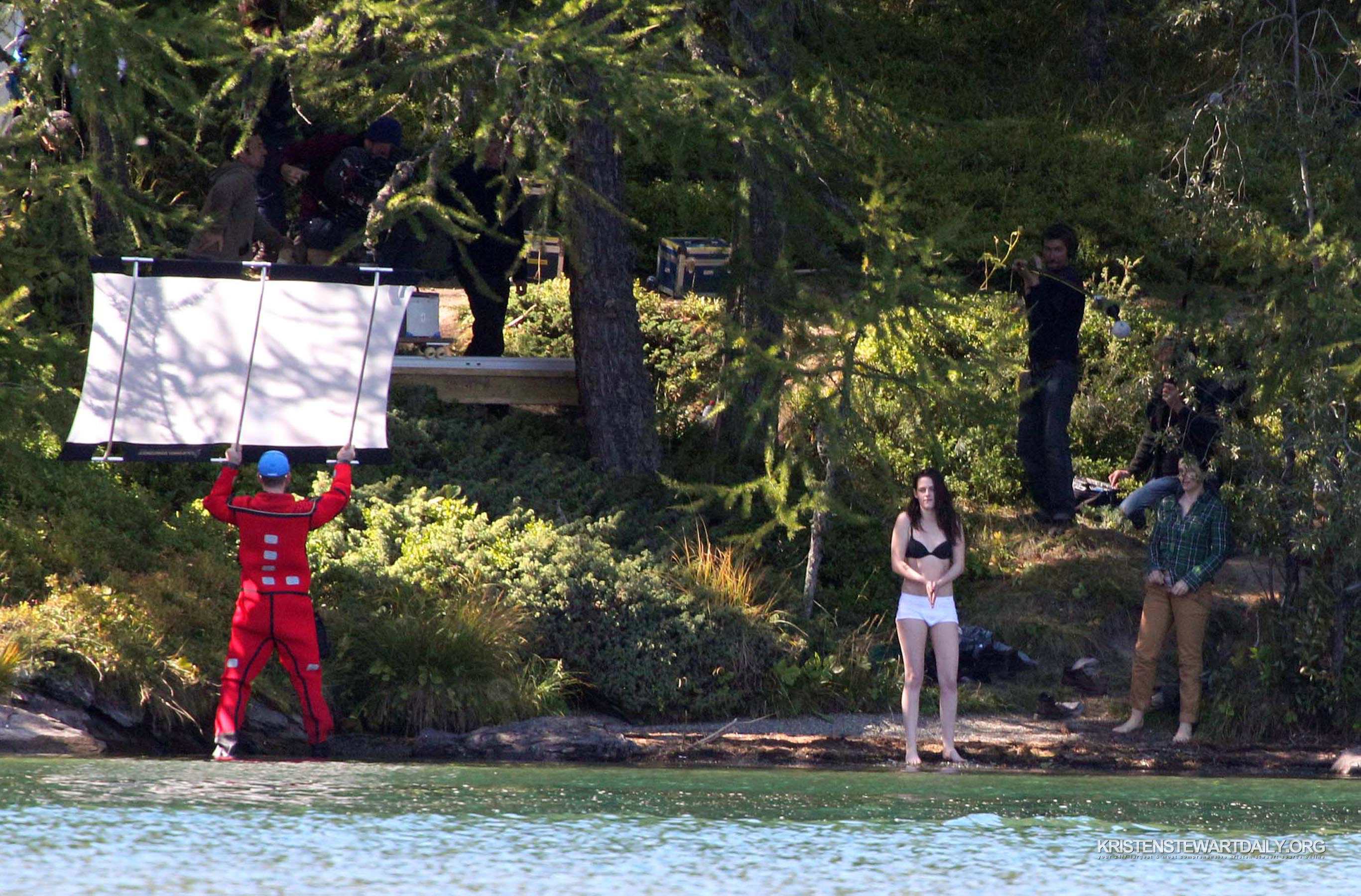 Kristen Stewart Swimming in Black Bra and Men’s Boxers