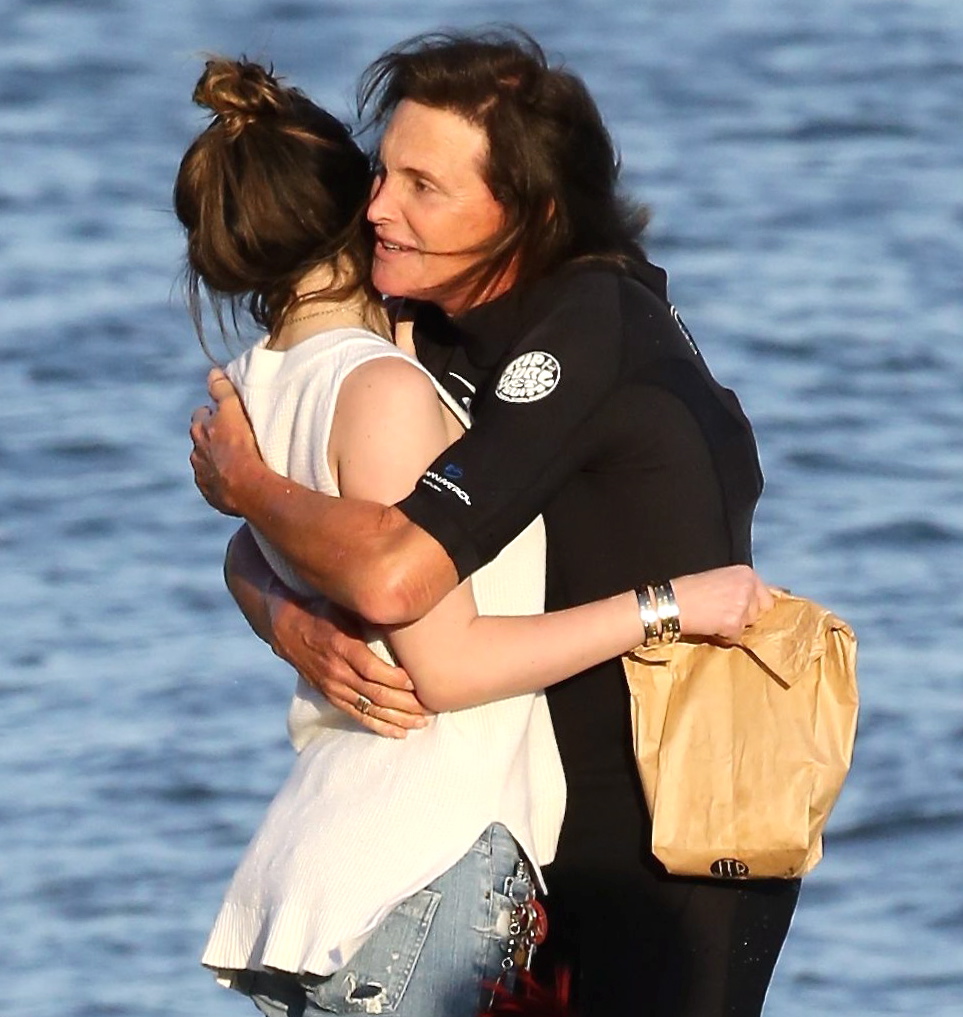 Please contact X17 before any use of these exclusive photos – x17@x17agency.com Bruce Jenner pulled on his new wetsuit for a bit of paddle boarding in Malibu. Daughter Kylie joined him, with a film crew in tow, on Friday, March 21, 2014 X17online.com EXCLUSIVE