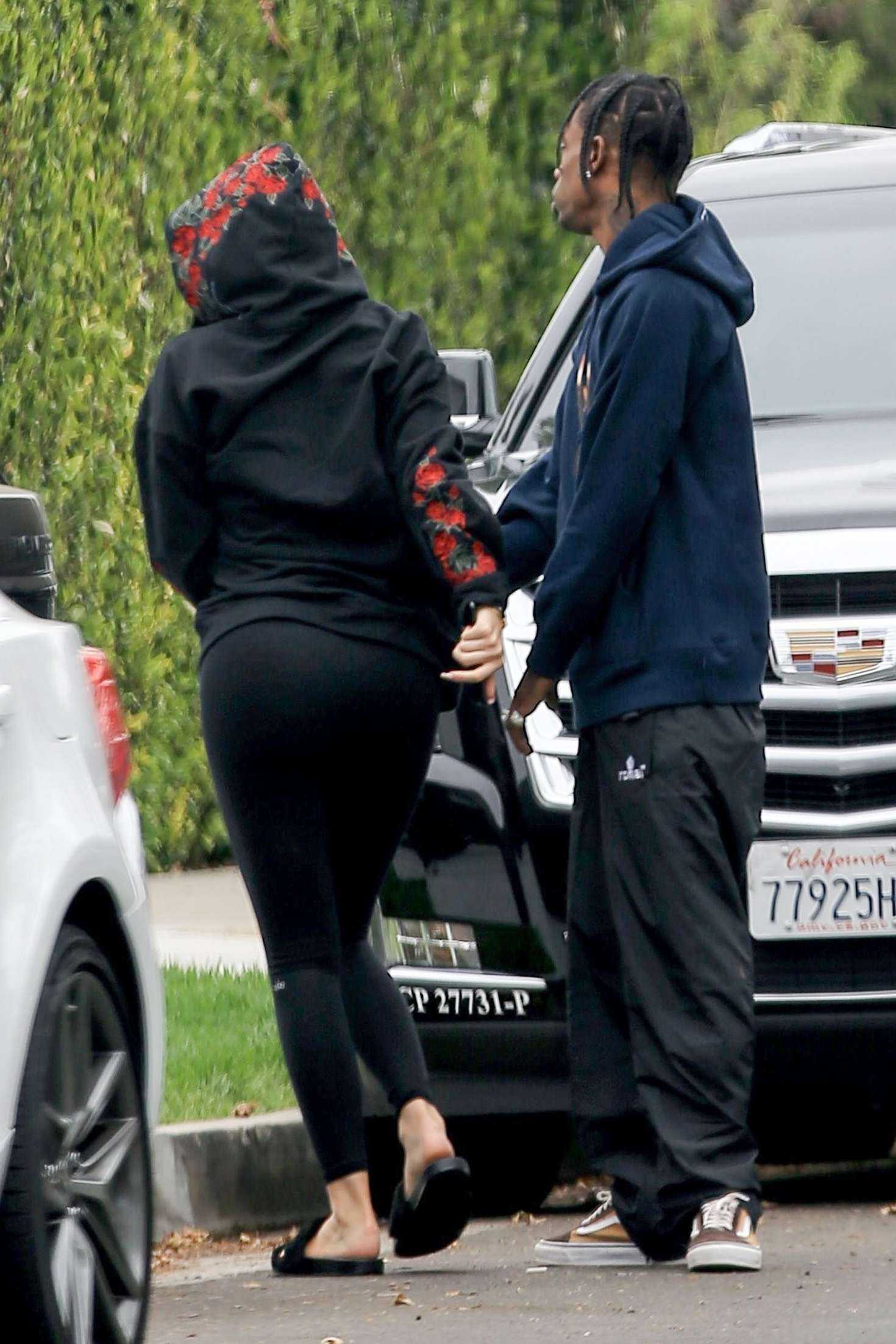 Kylie Jenner Booty in Tights and Travis Scott Out in Los Angeles