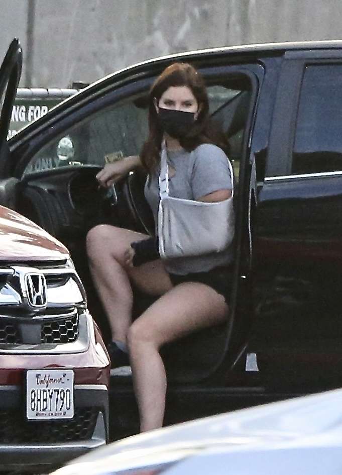 Los Angeles, CA – *EXCLUSIVE* – Singer Lana Del Rey seen making a stop at Hugo’s Tacos today to grab a bite to eat before heading over to ProHealth Clinic for a visit, presumably to care for her injured arm in a arm sling.