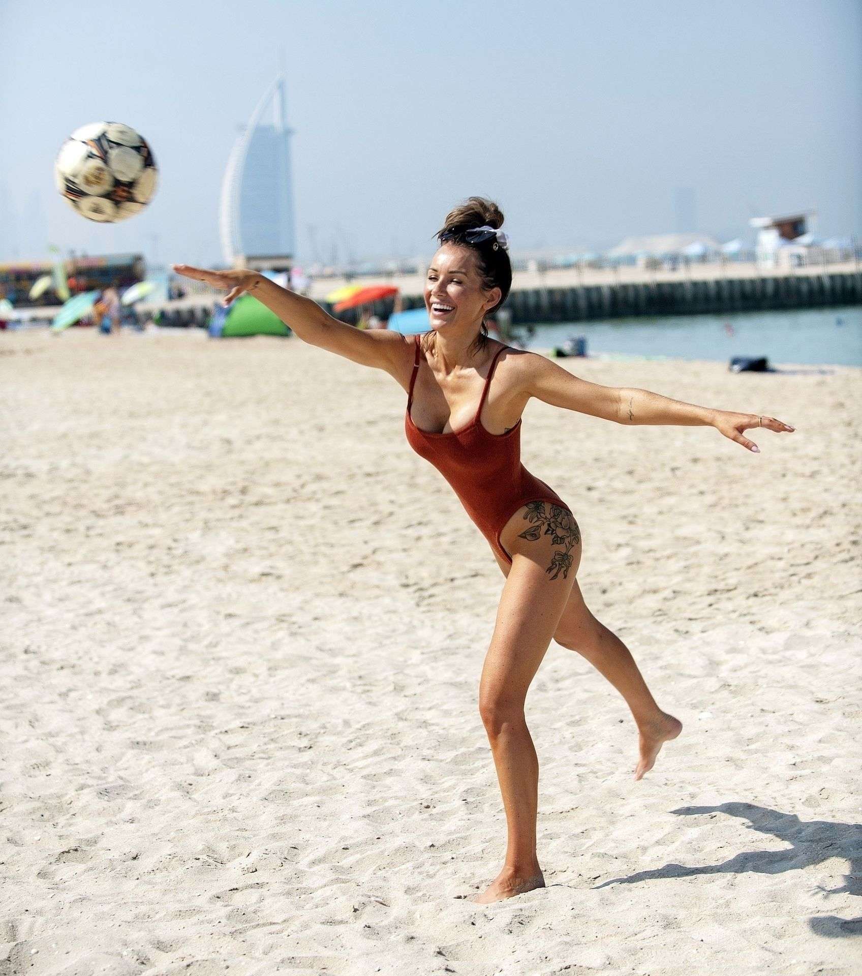 Laura Anderson in Swimsuit, Display her Ball Skills on the Beach in Dubai
