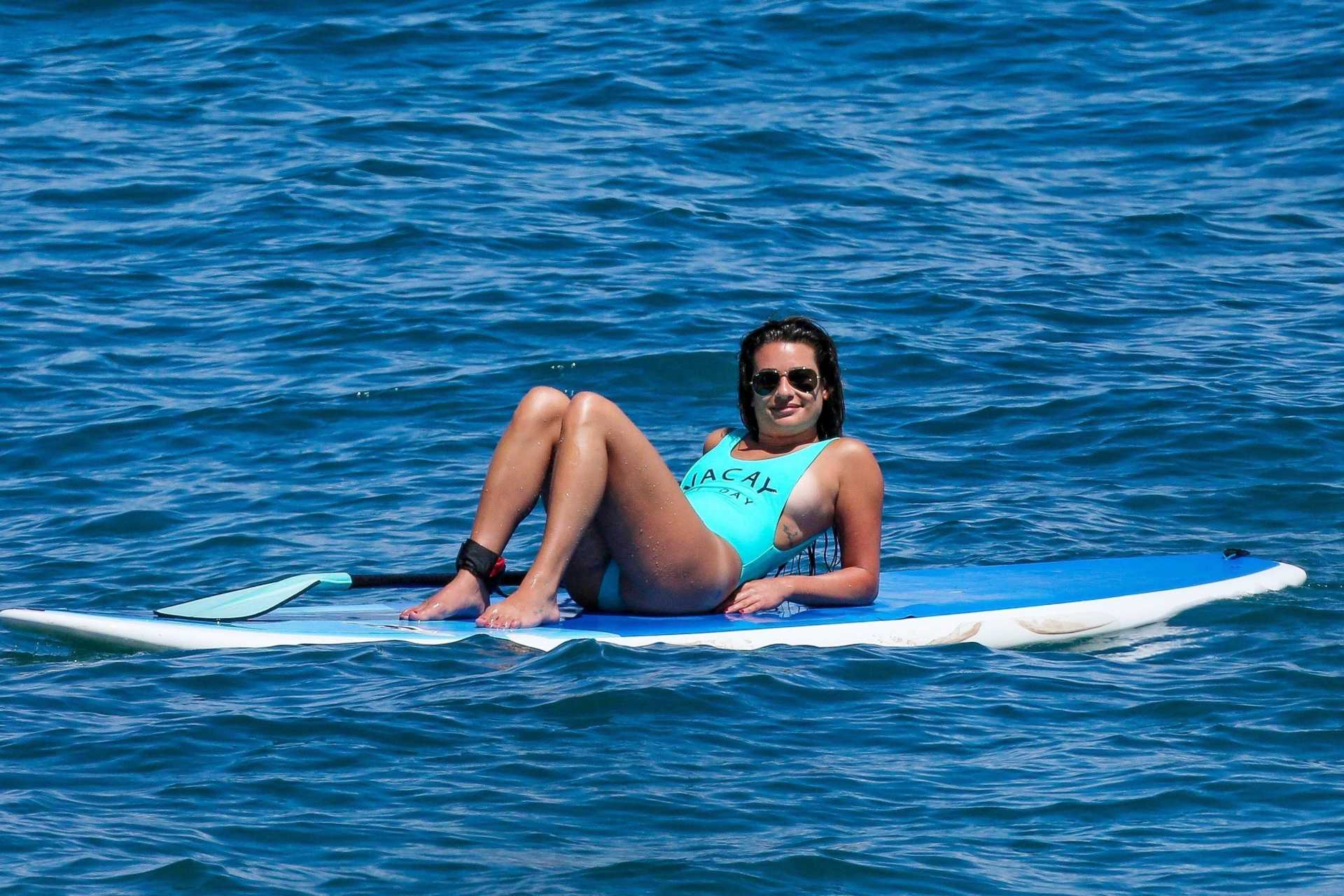 Lea Michele in Green Swimsuit at a Beach in Hawaii