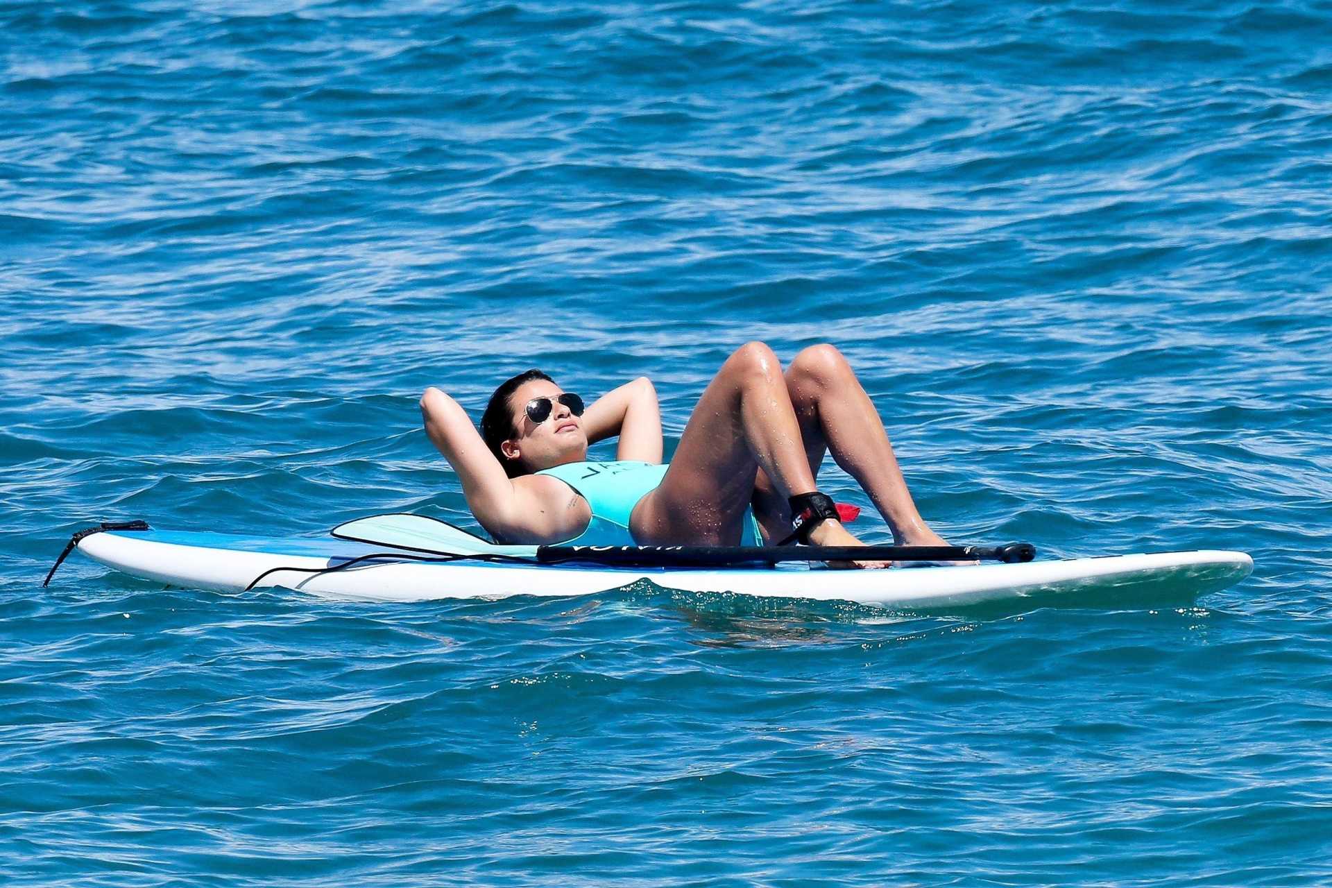 Lea Michele in Green Swimsuit at a Beach in Hawaii