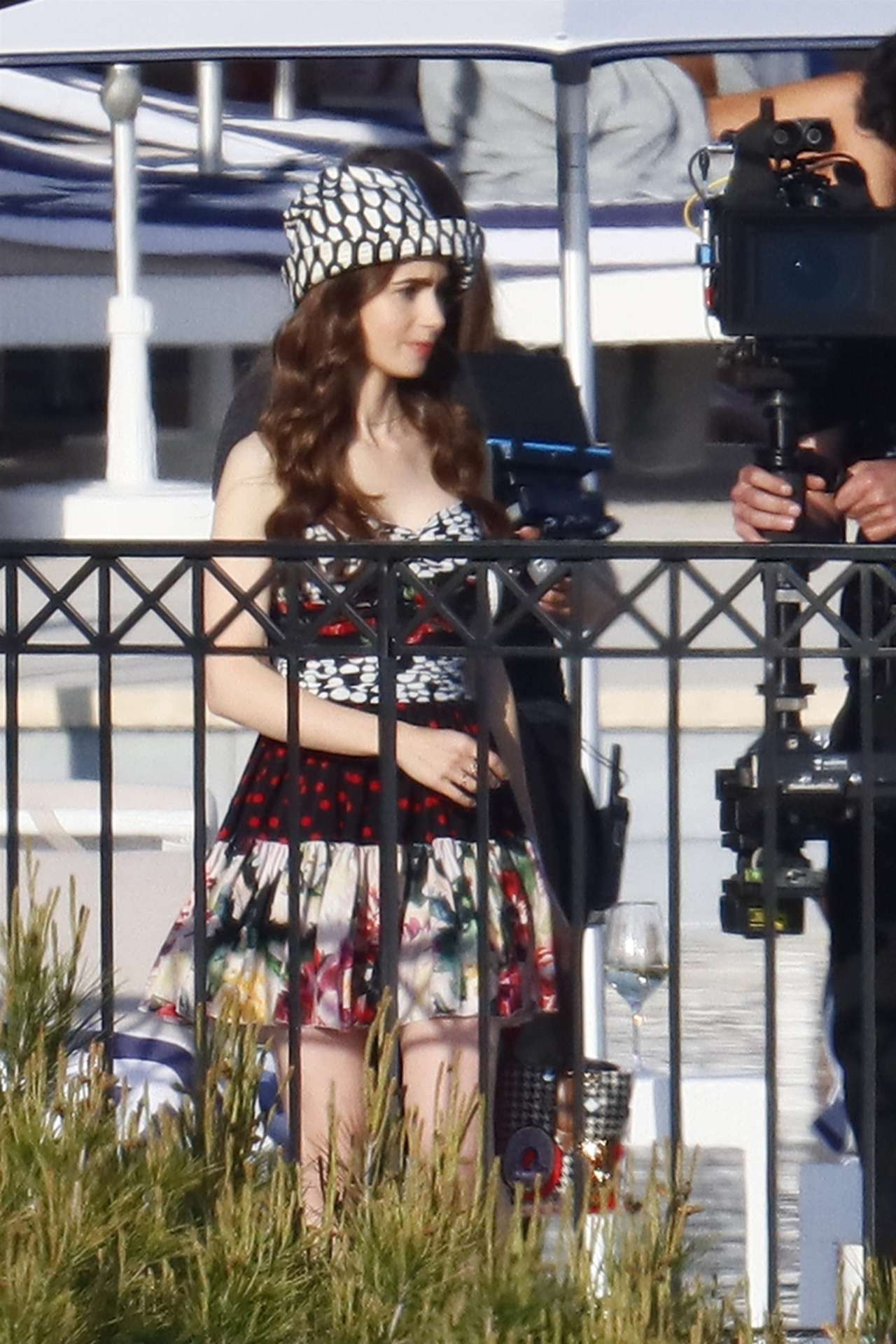 Lily Collins Filming on the Set of ‘Emily in Paris’ in Paris