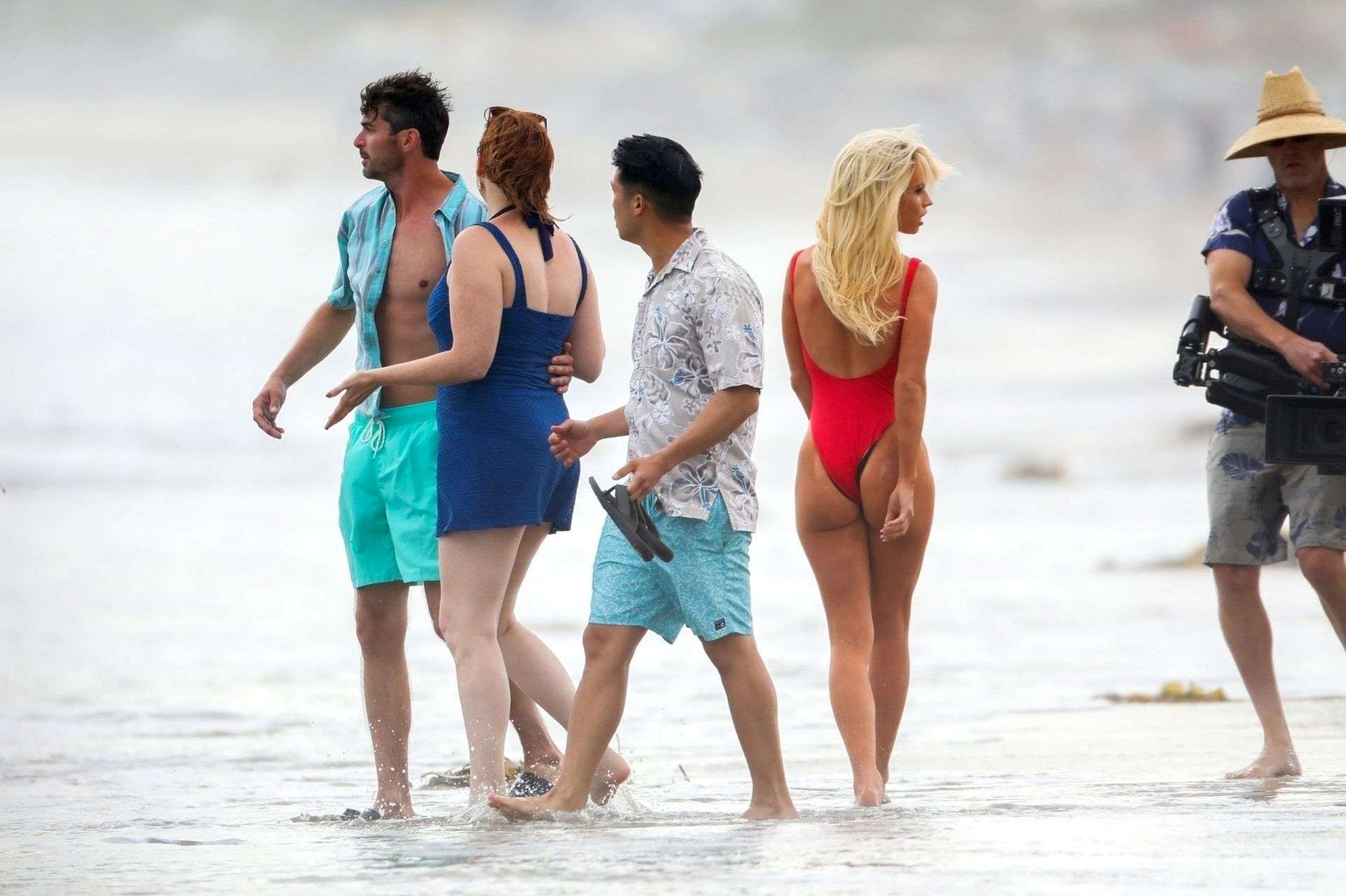 Attached to: Lily James Booty in Red Swimsuit on a Beach in Malibu