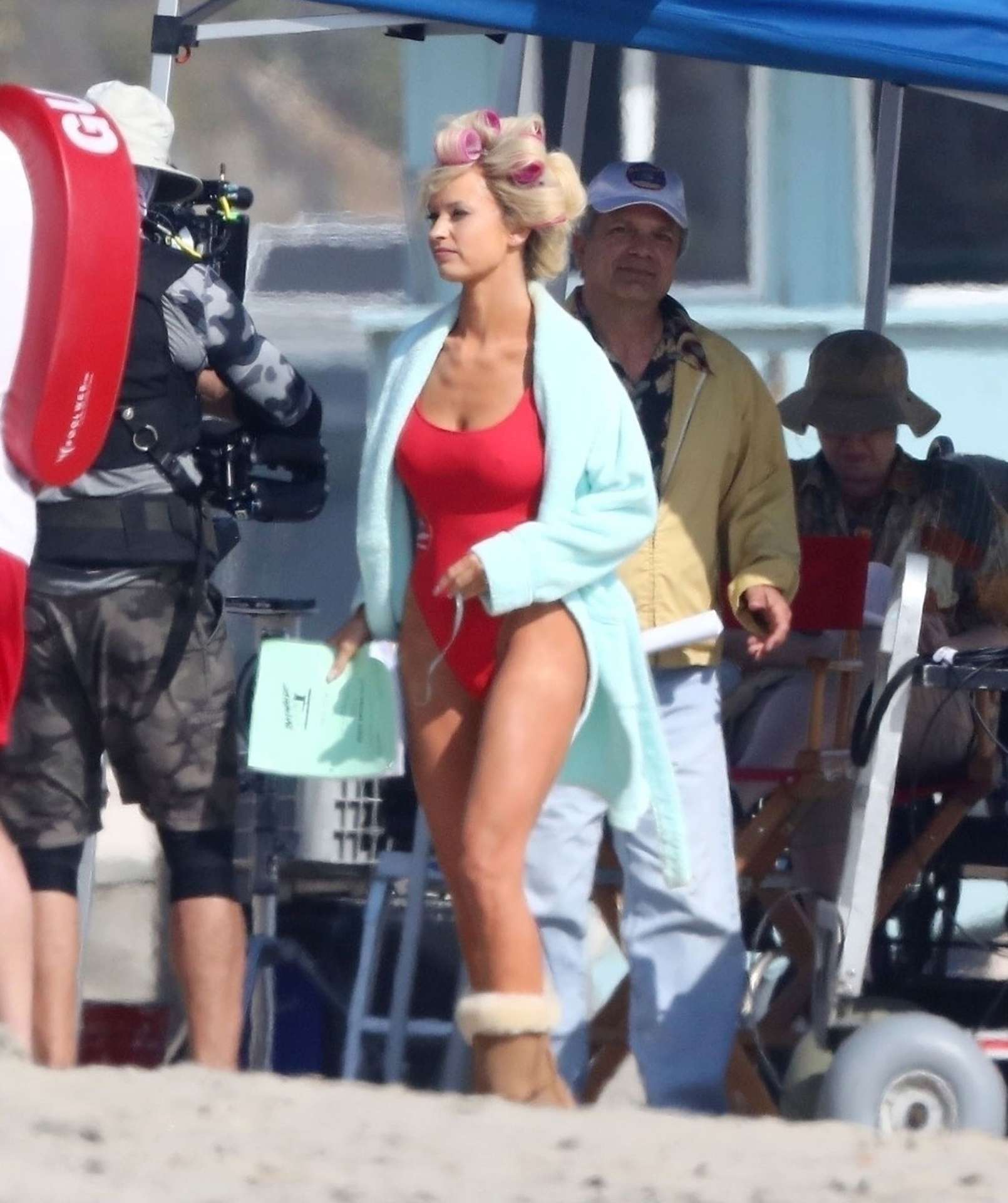 Attached to: Lily James Booty in Red Swimsuit on a Beach in Malibu