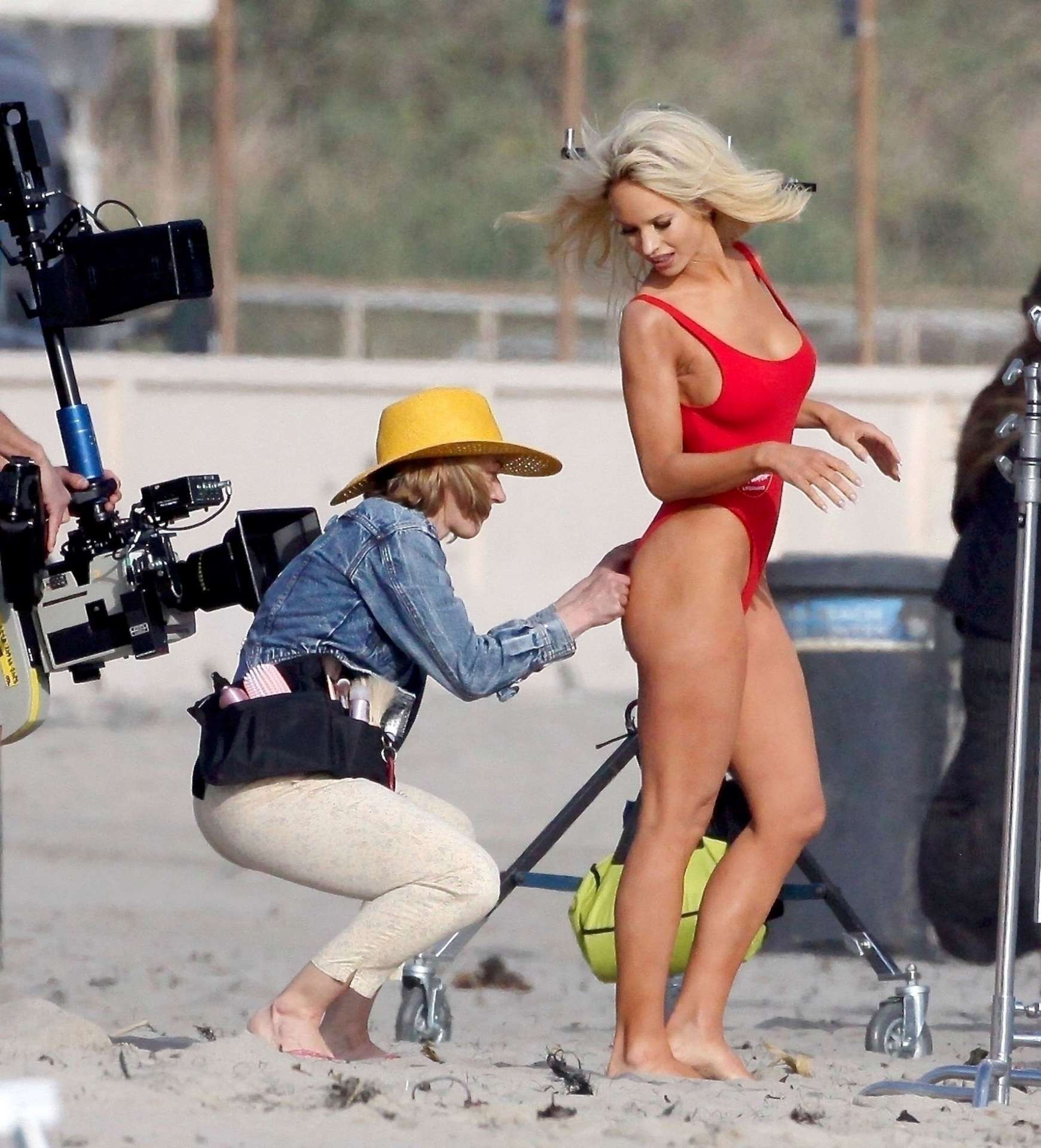 Attached to: Lily James Booty in Red Swimsuit on a Beach in Malibu