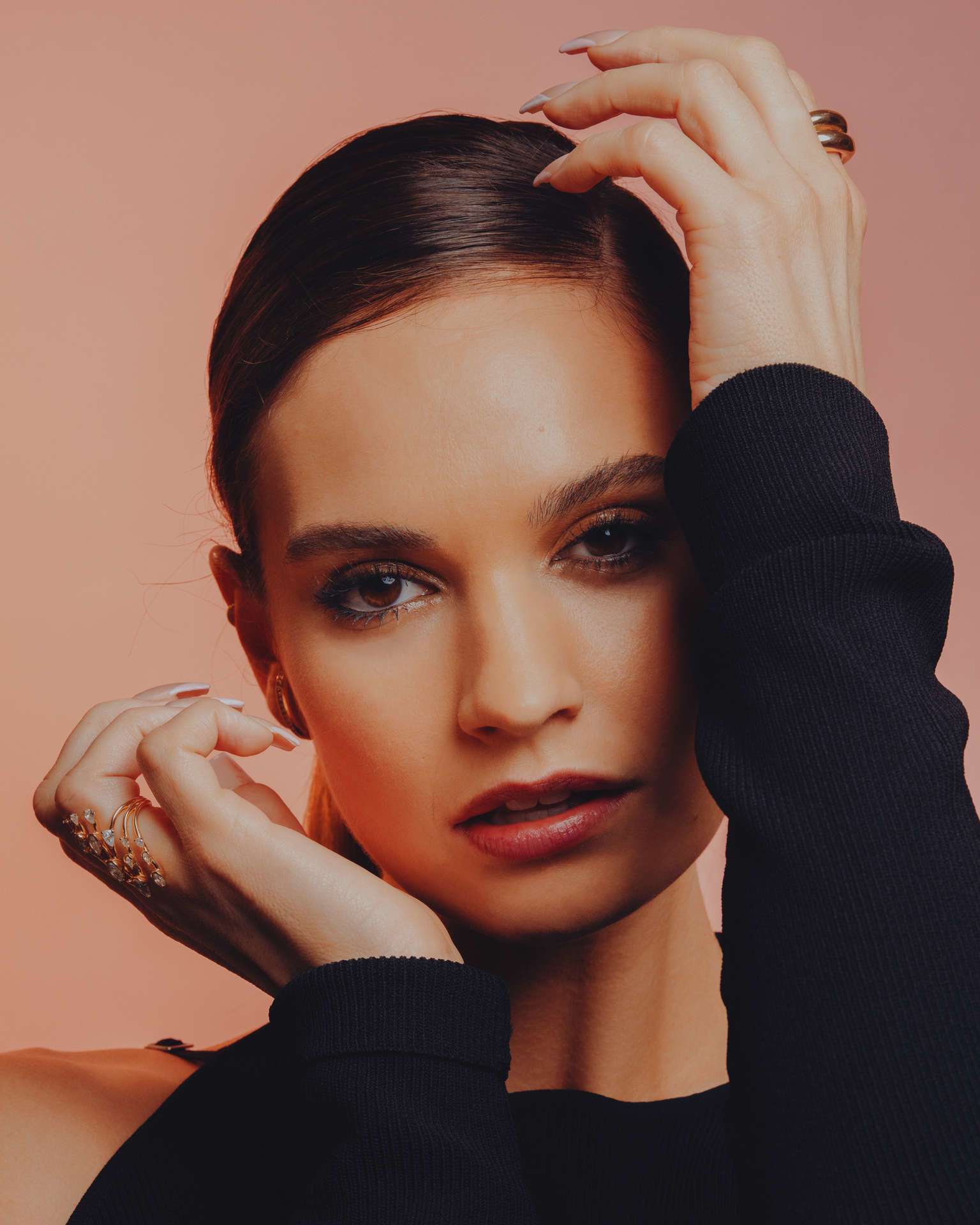 LOS ANGELES, CA. JANUARY 25, 2022: Portrait of actress Lily James, who channels Pamela Anderson at the peak of her fame in the Hulu limited series “Pam and Tommy,” premiering Feb. 2. For Sunday Calendar cover, Feb. 6, 2022. Photographed at the Four Seasons. CREDIT: Ryan Pfluger/For The Times