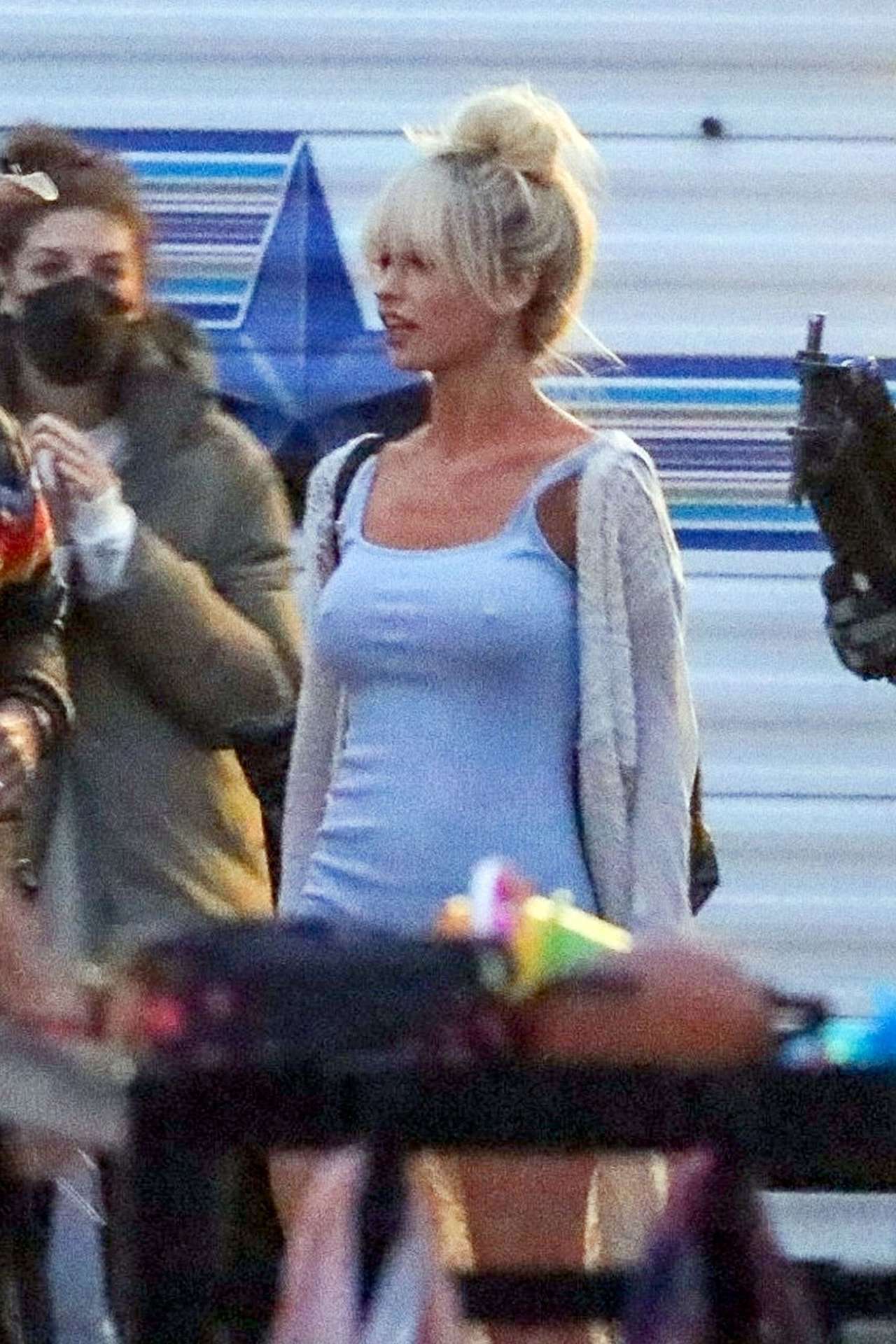Attached to: Lily James Upskirt On the Set of “Pam and Tommy” in Malibu
