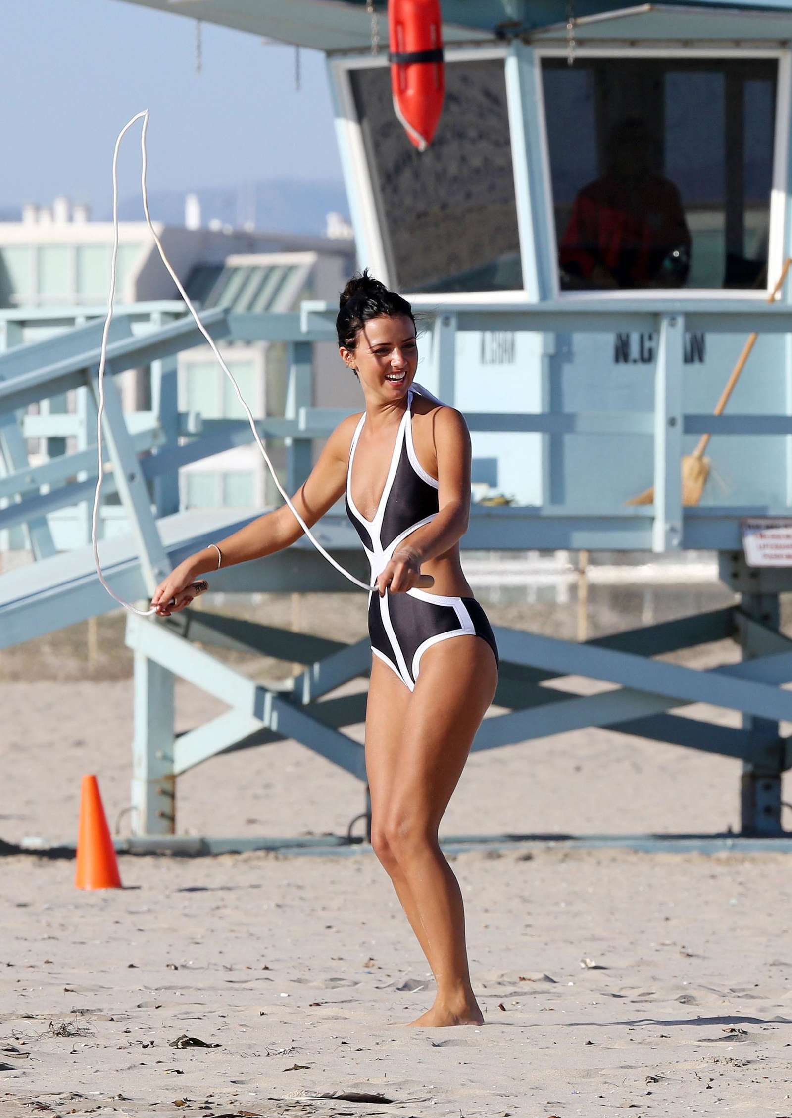 Lucy Mecklenburgh in a Striking Monochrome Bikini on Santa Monica Beach