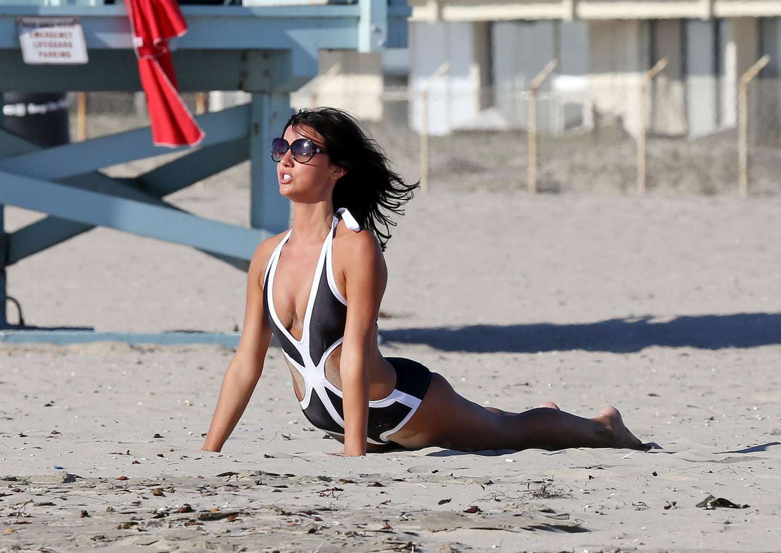 Lucy Mecklenburgh in a Striking Monochrome Bikini on Santa Monica Beach