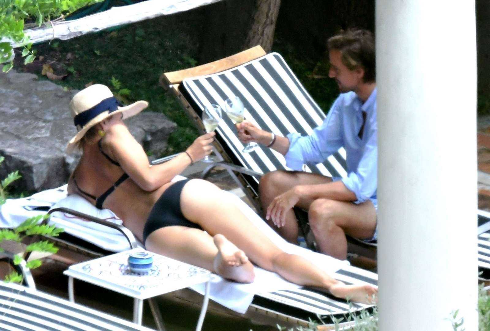 Maria Sharapova Booty in Black Bikini at the Pool in Positano