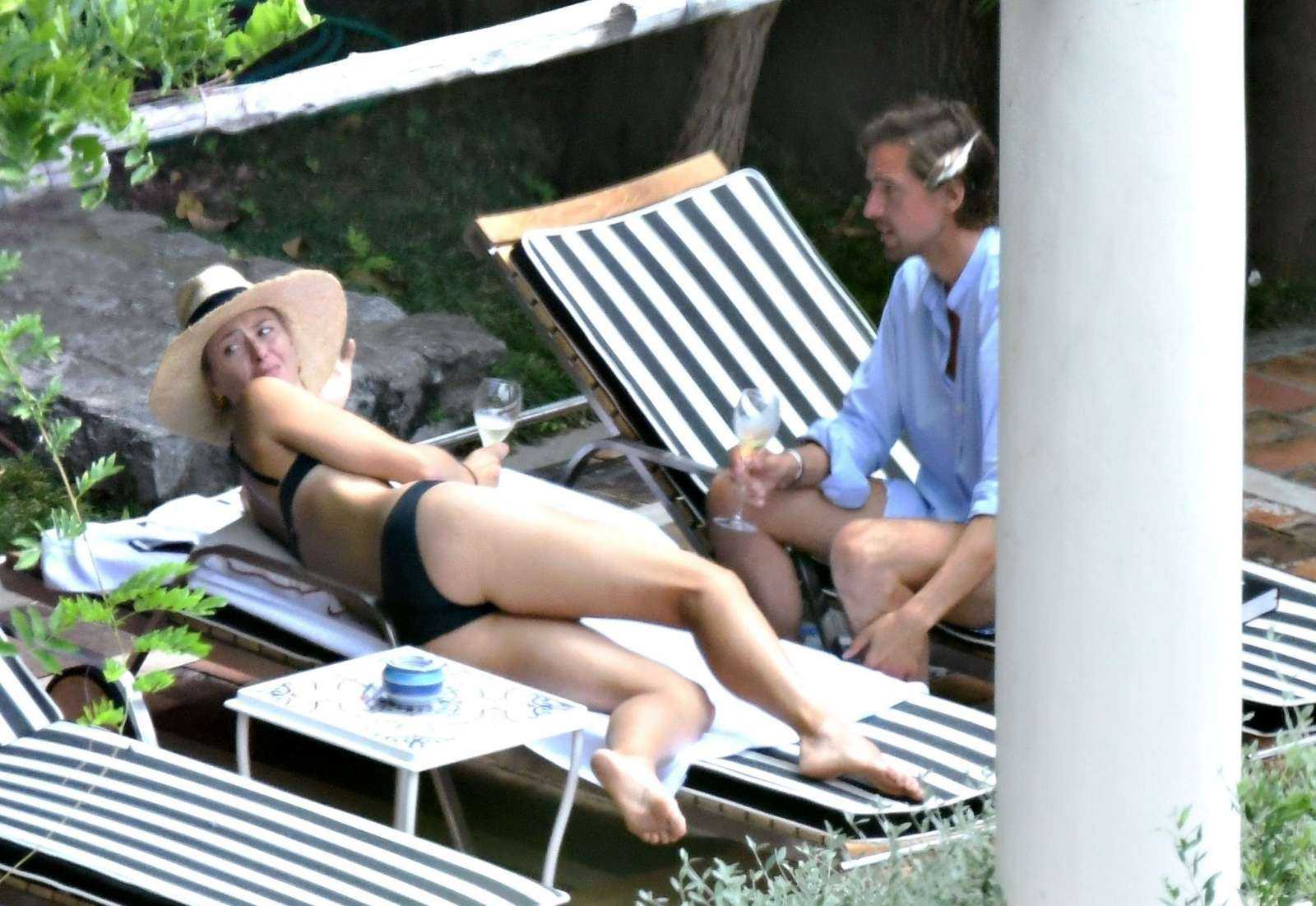 Maria Sharapova Booty in Black Bikini at the Pool in Positano