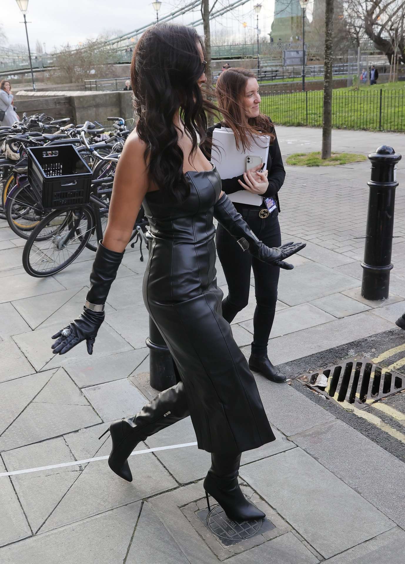 Recently engaged Maya Jama looks sensational stepping after filming the John Bishop show wearing a sexy leather dress and gloves