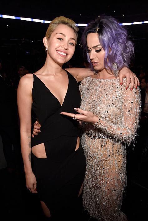Miley Cyrus and Katy Perry at 57th Annual GRAMMY Awards in Los Angeles