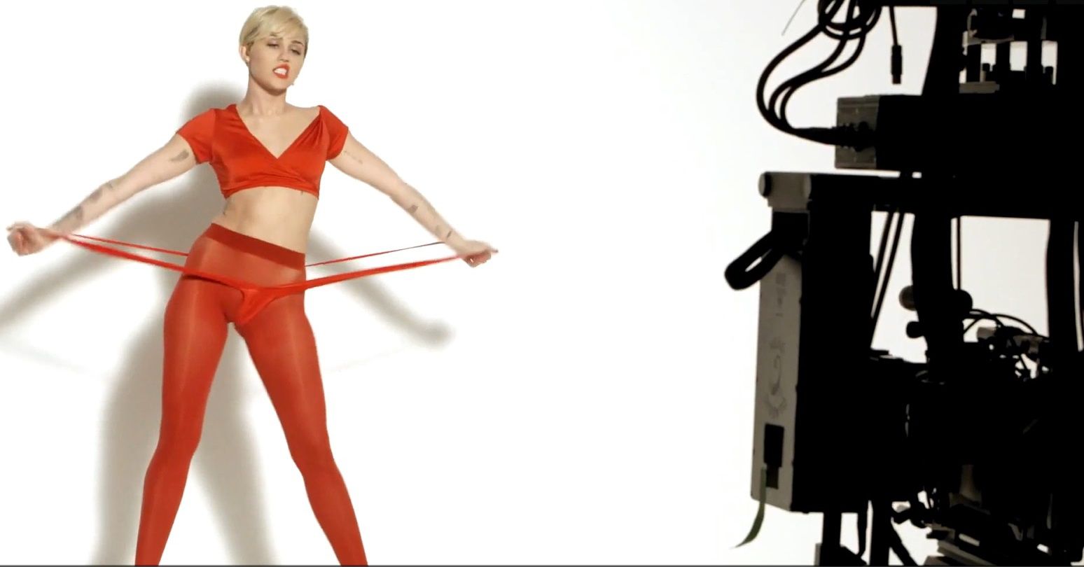 Attached to: Miley Cyrus at “Golden Lady” Leggings Photoshoot