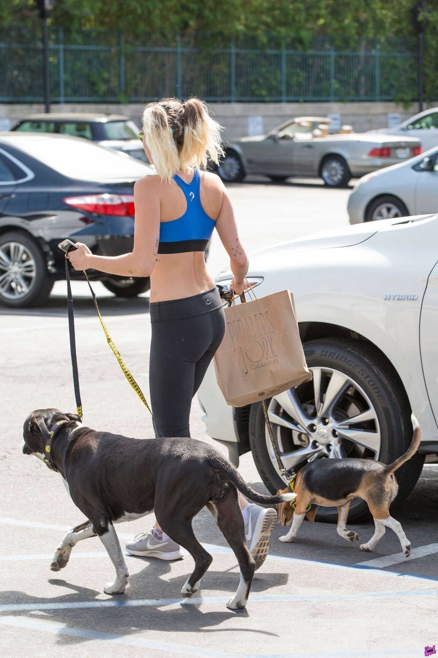 Miley Cyrus in Leggings Walking her Dogs in Calabasas