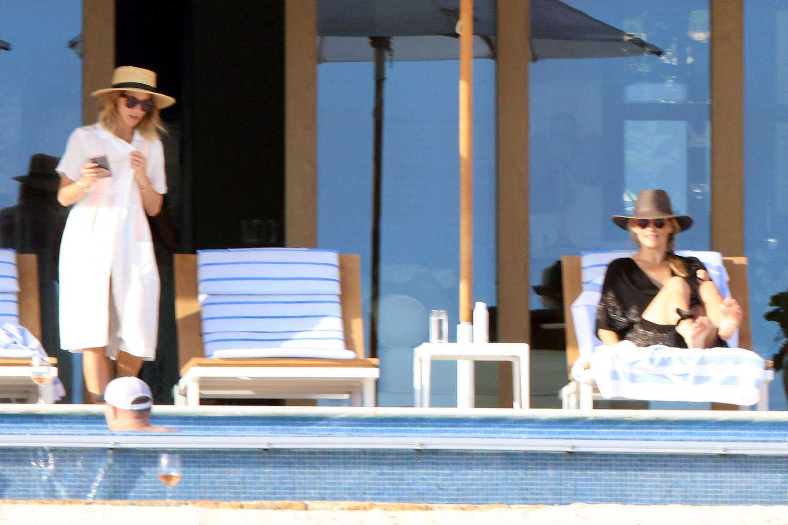 Molly Sims in Black Swimsuit at a Pool in Cabo San Lucas