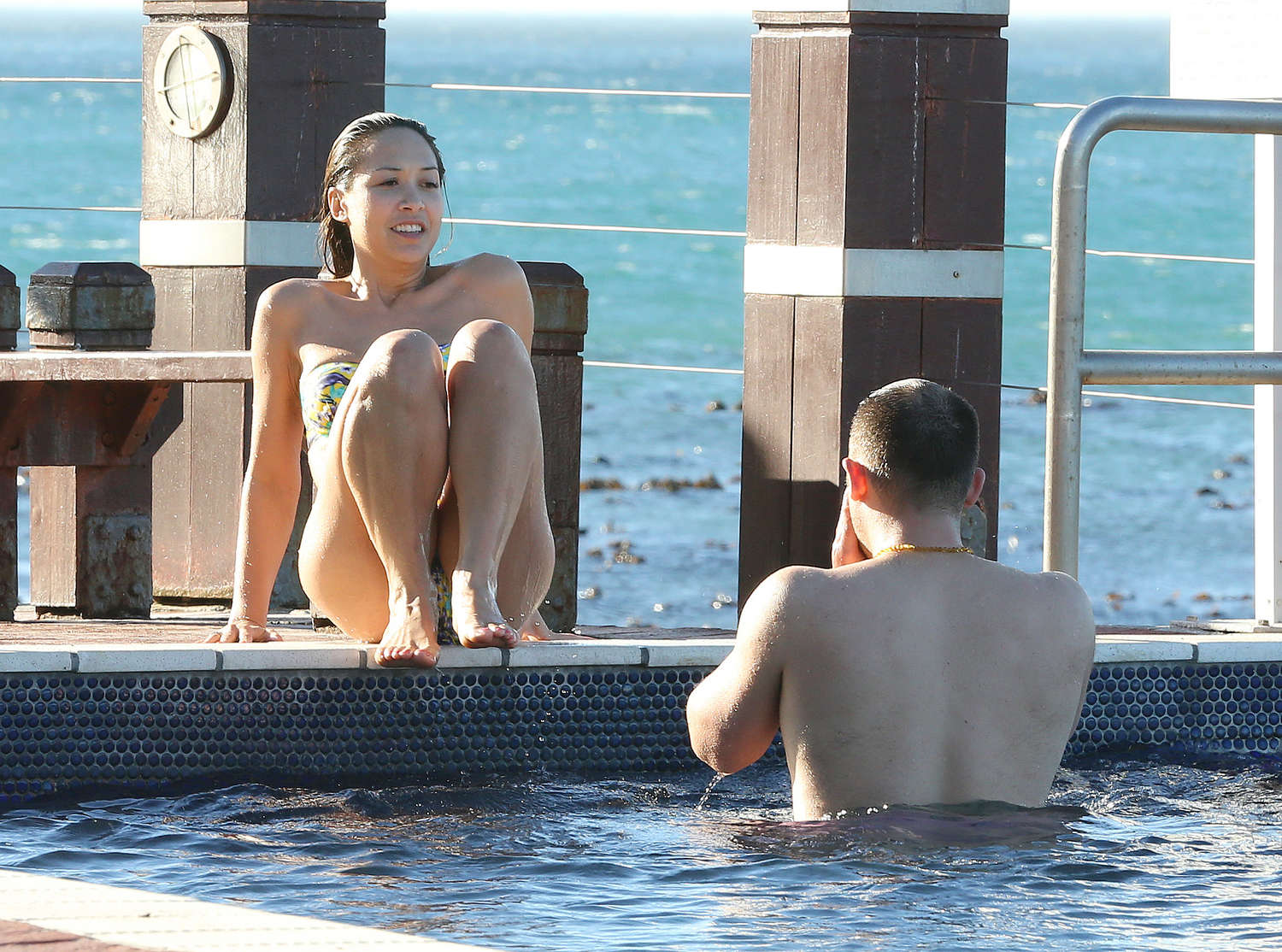 Myleene Klass Floral Print Bikini Candids by the Pool