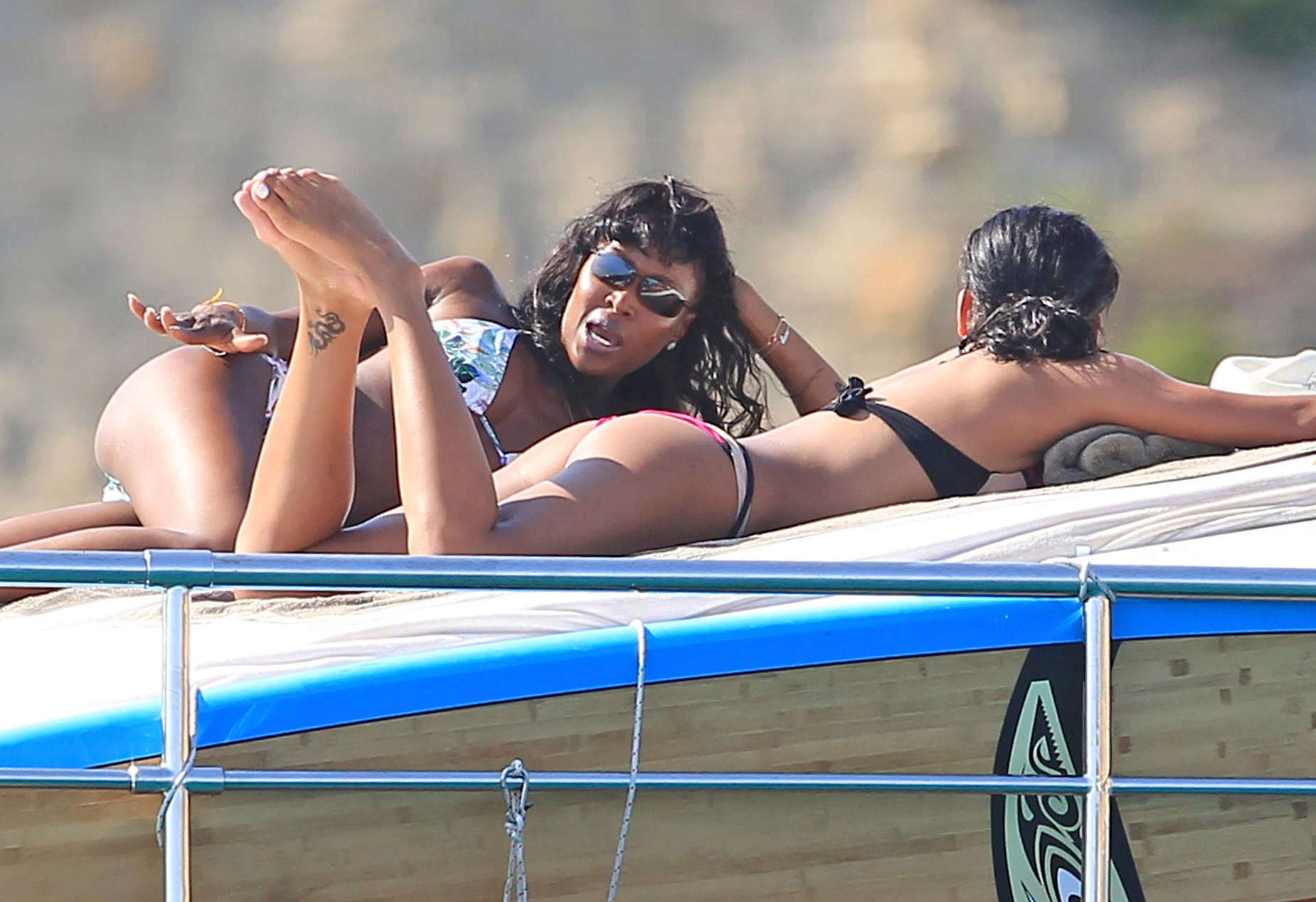 Naomi Campbell and Cassie in Bikini Sailing Around Ibiza With Diddy