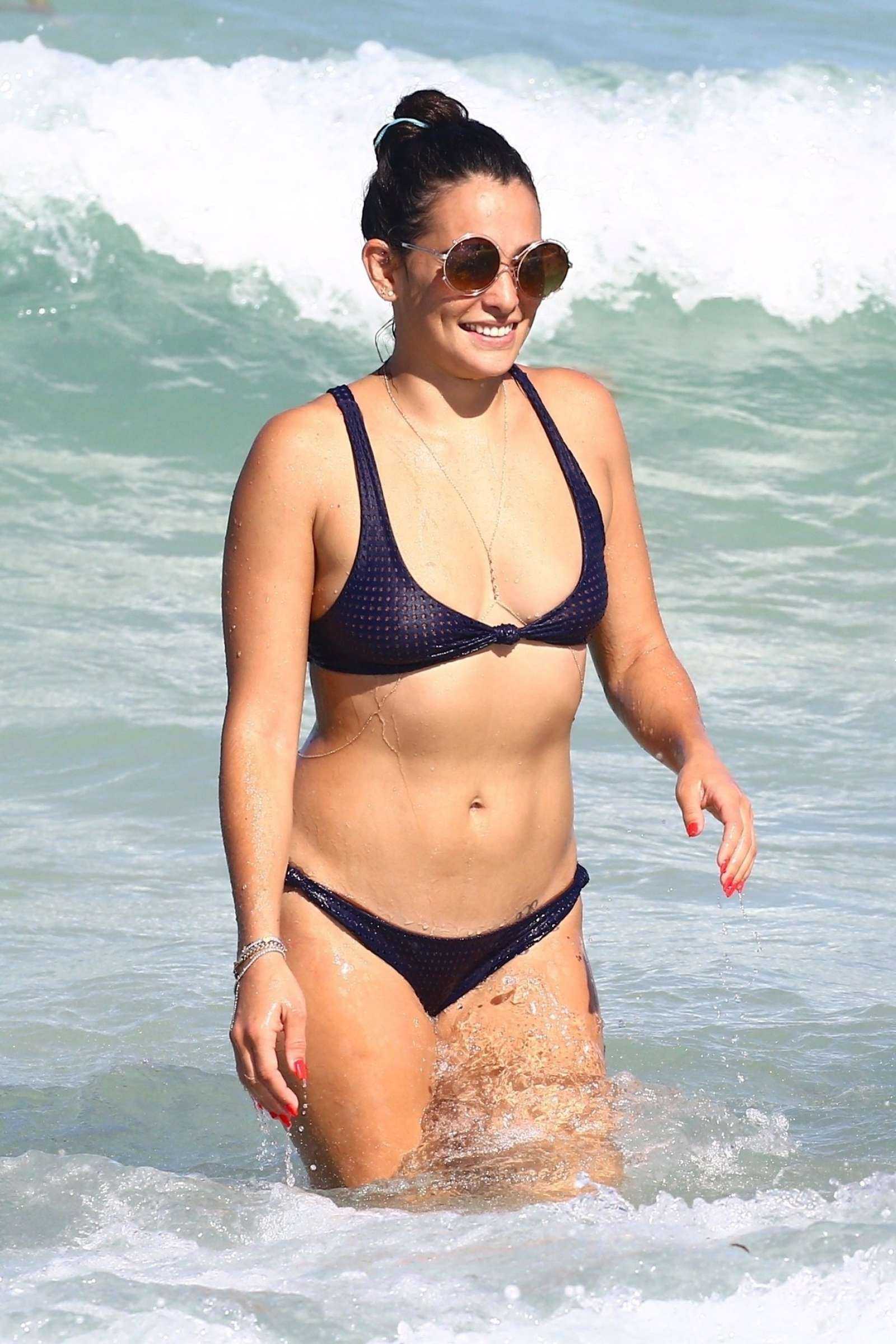 Natalie Martinez in Blue Bikini on the Beach in Miami