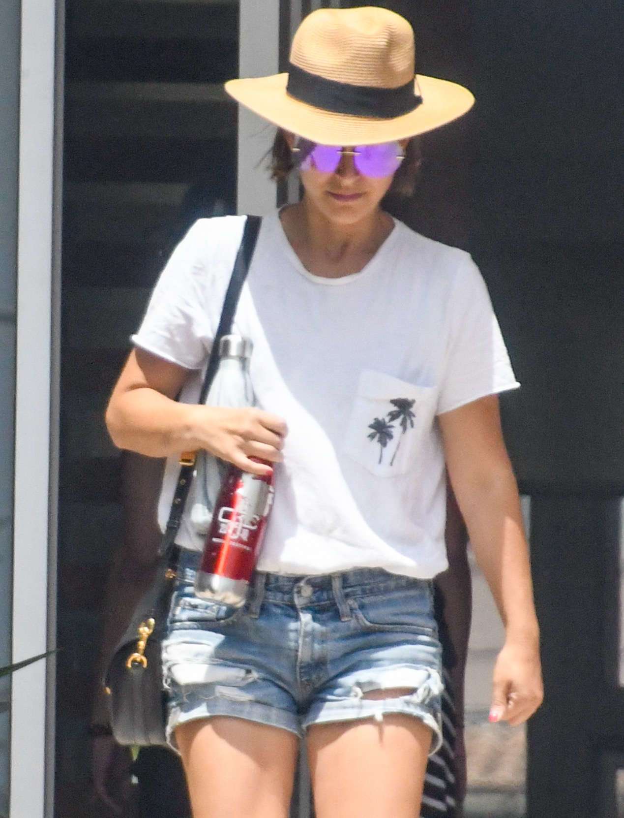 The Thor actress brave the 39 degree heat as she was seen running errands during a heatwave.