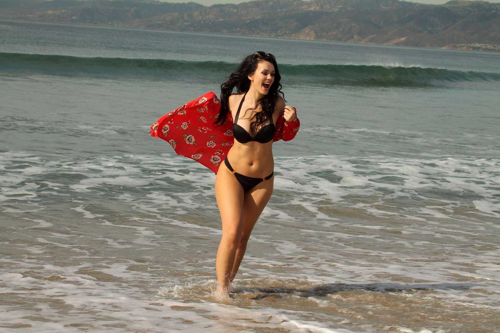 Natasha Blasick in Black Bikini at Malibu Beach
