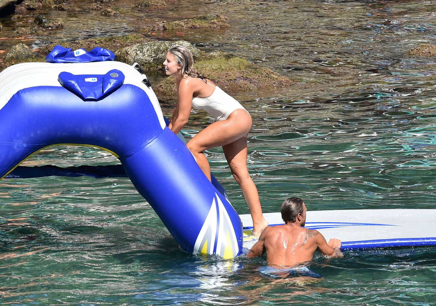 Natasha Oakley in White Swimsuit in Portofino