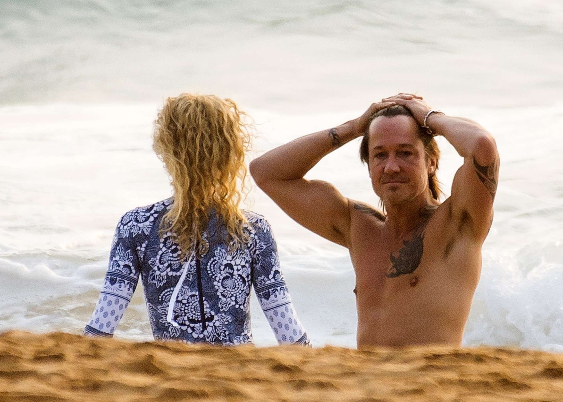 Sydney, AUSTRALIA – *EXCLUSIVE* – Nicole Kidman and husband Keith Urban hit the beach while enjoying a little couple time during their trip to her native Australia. The couple were seen going for an early swim and emerging from the water hand in hand before drying off and heading out to enjoy the rest of their day.