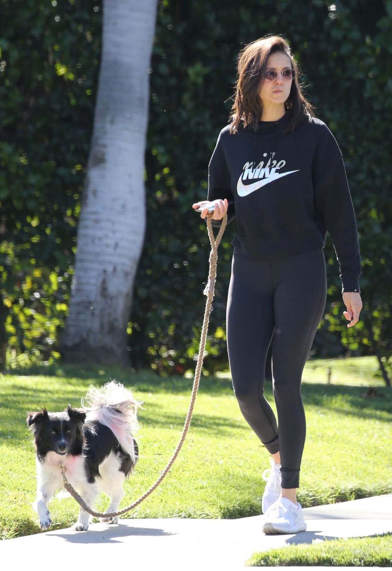 Attached to: Nina Dobrev in Black Leggings, Walking her Dog Maverick in Hollywood