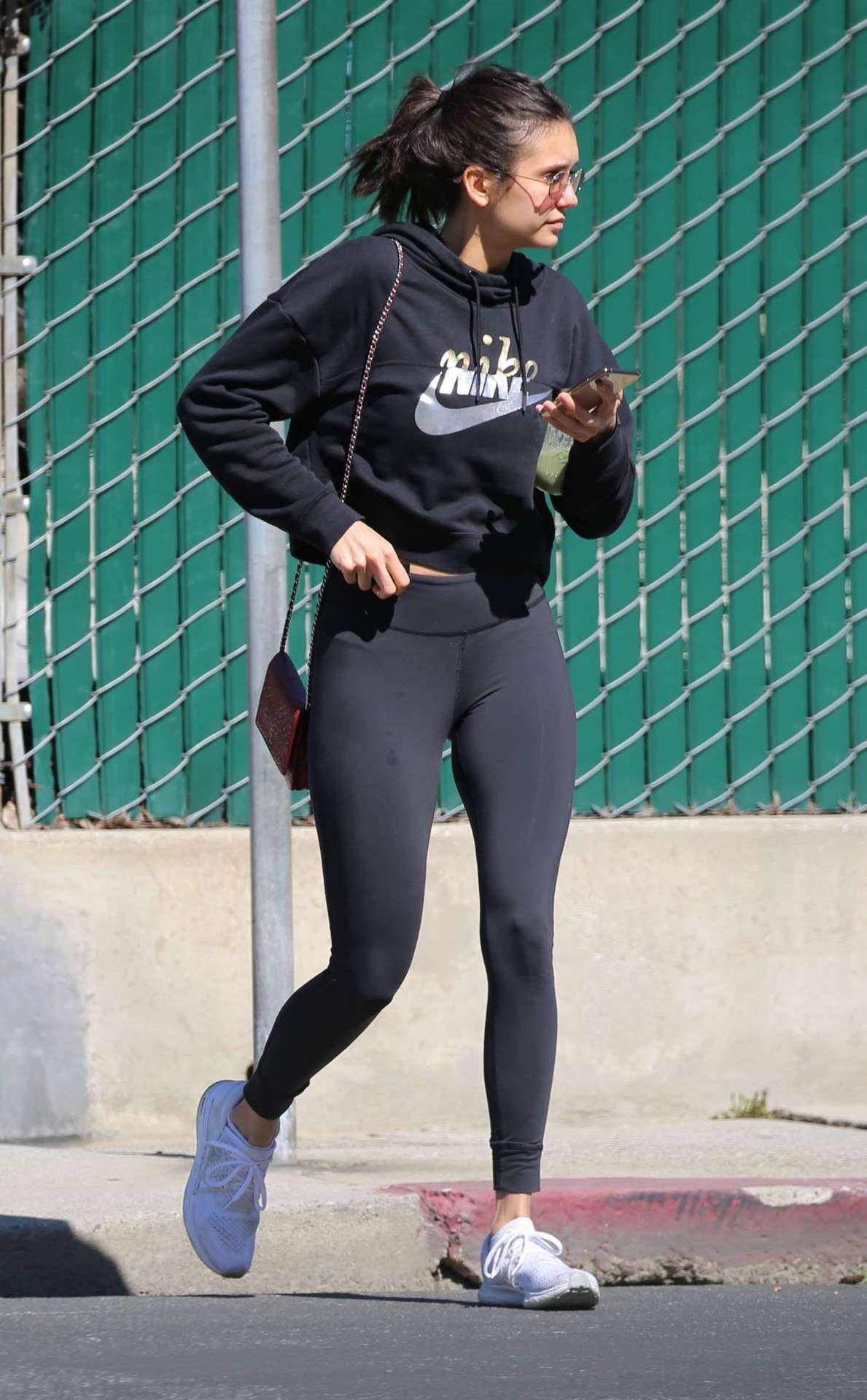 Attached to: Nina Dobrev in Black Leggings, Walking her Dog Maverick in Hollywood