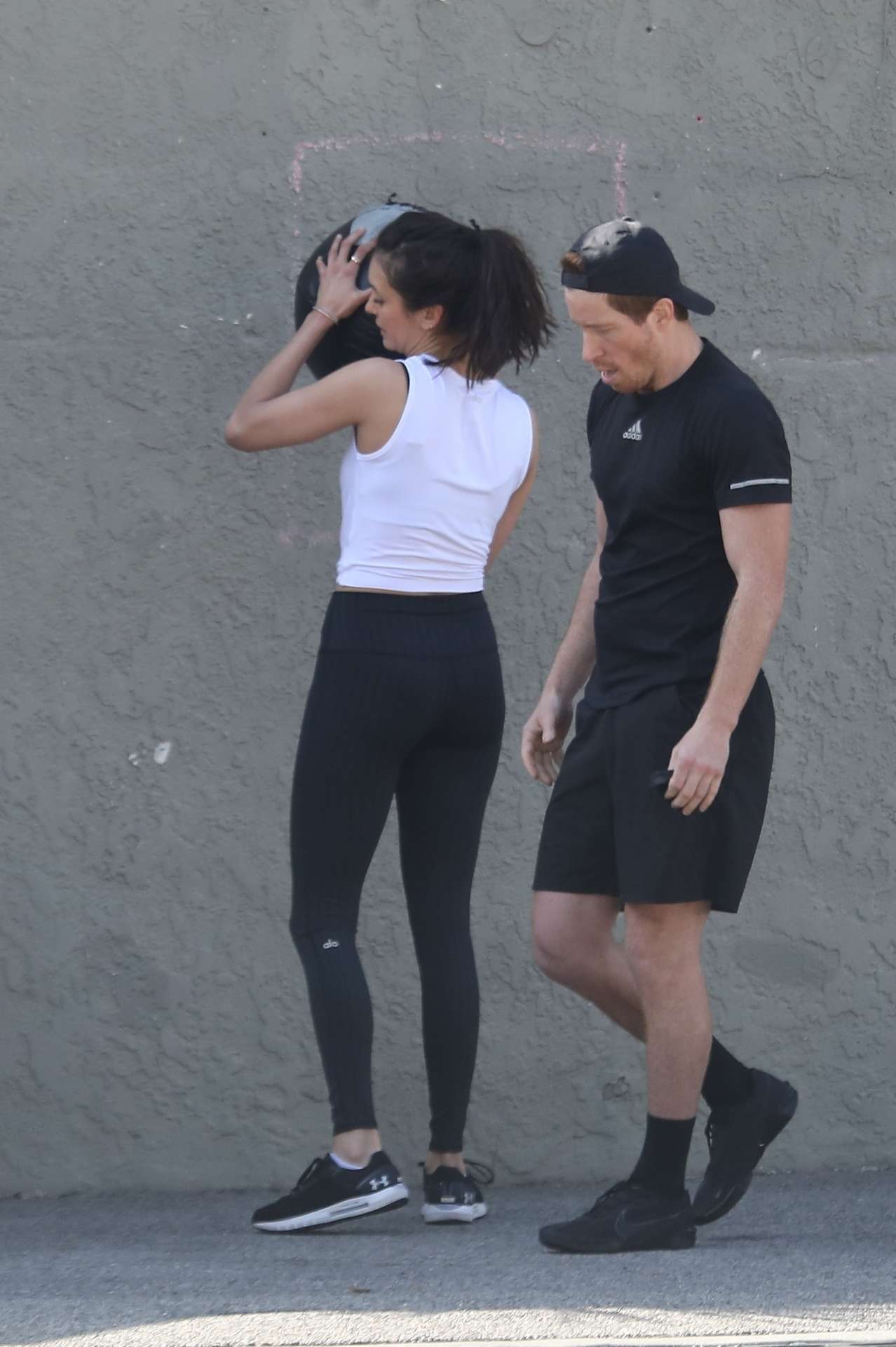 *EXCLUSIVE* Santa Monica, CA – Shaun White and Nina Dobrev are a fit couple! The two lovebirds were spotted working out together at a private gym in Santa Monica. The duo threw medicine balls at the wall and worked up a hot sweat!