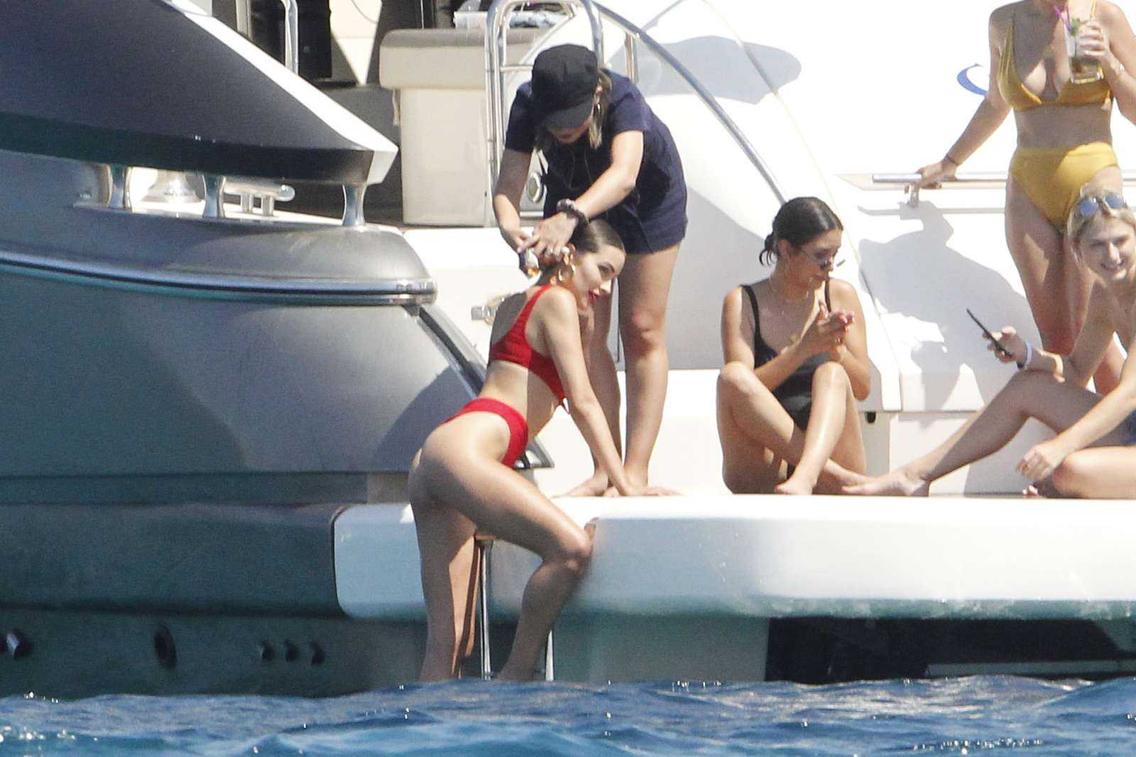 Olivia Culpo Booty in Red Bikini on a Yacht in Formentera