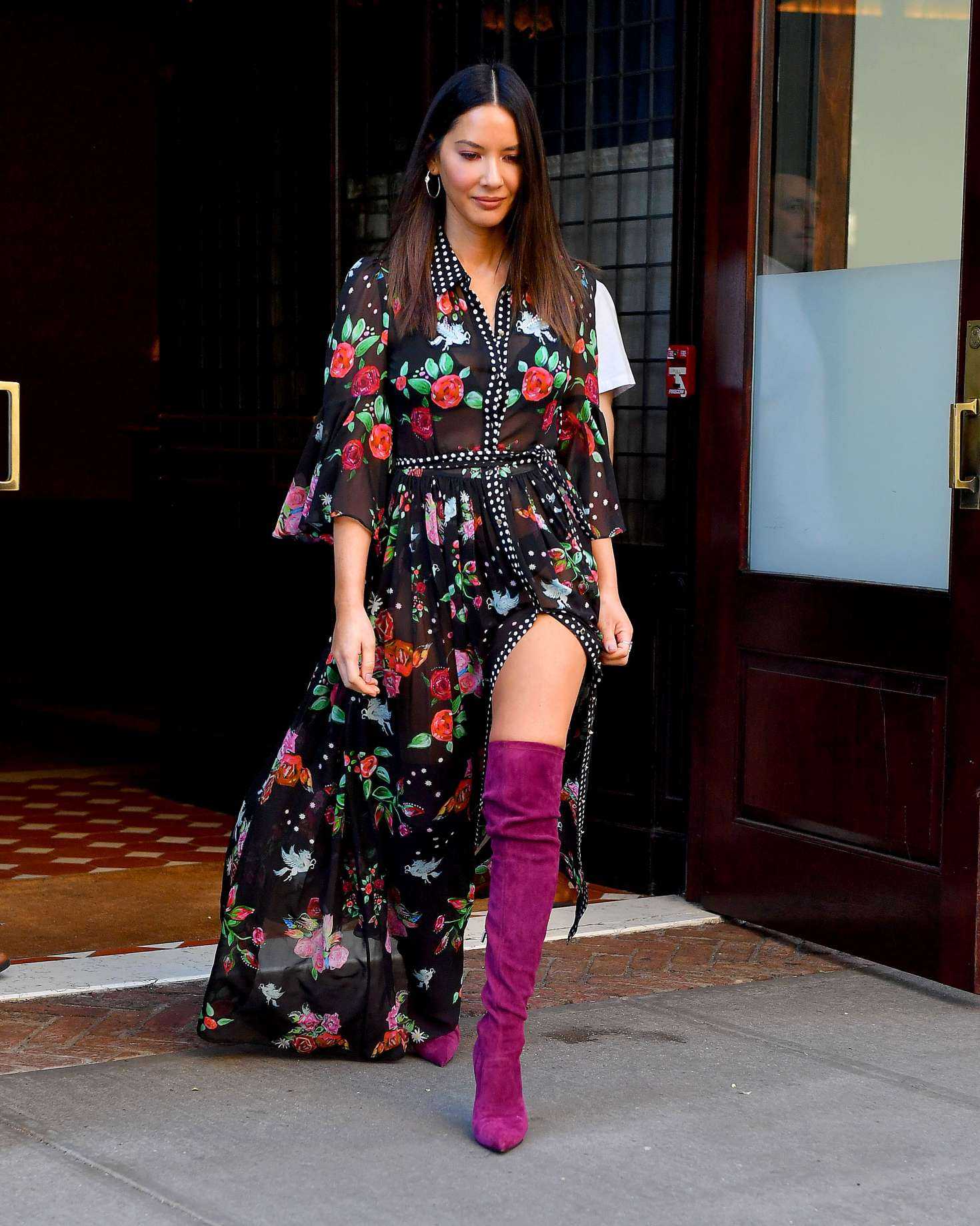 Olivia Munn in Floral Dress Out in NYC