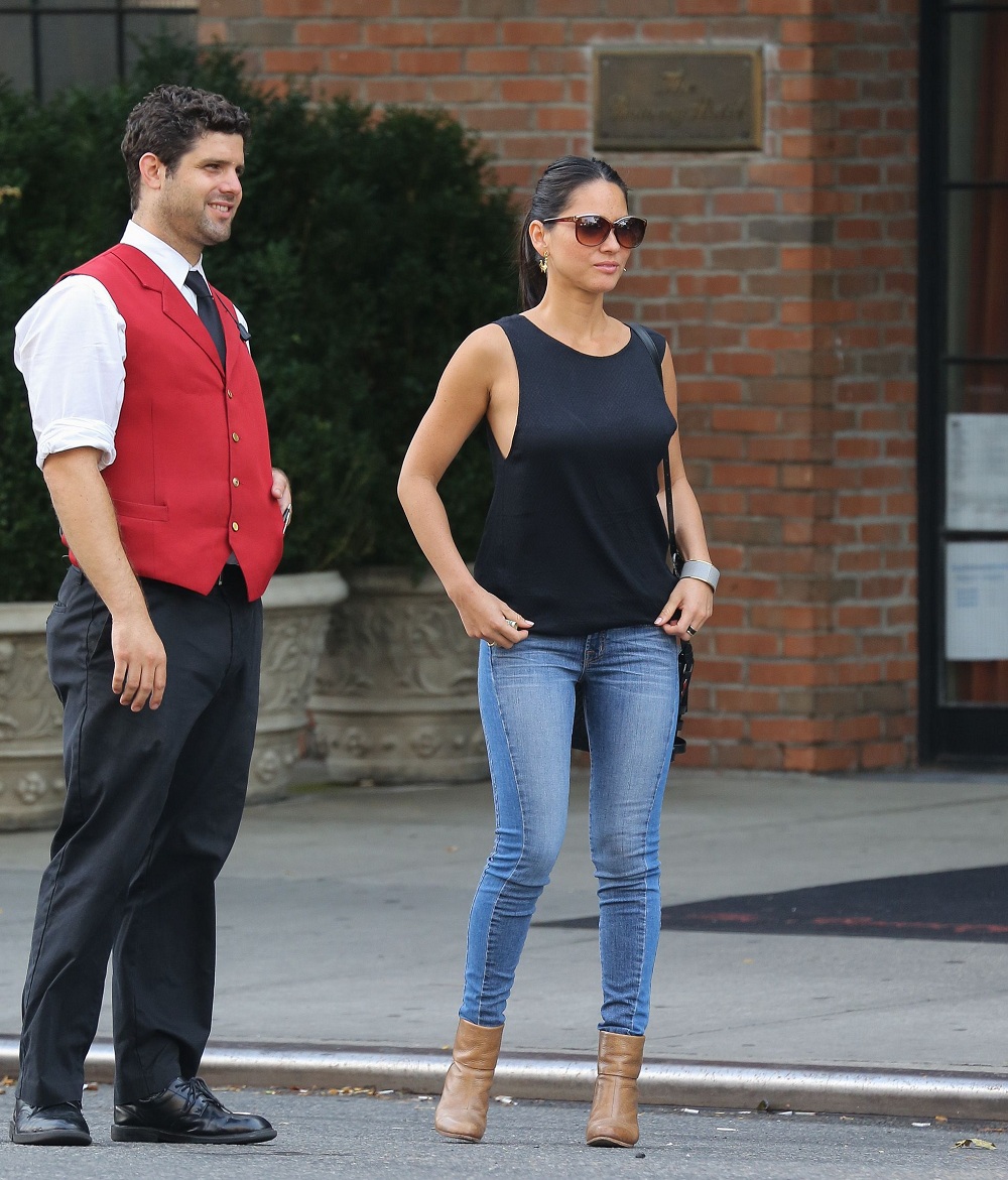 Olivia Munn in Jeans and Tank Top, getting a Taxi from her Hotel in NYC