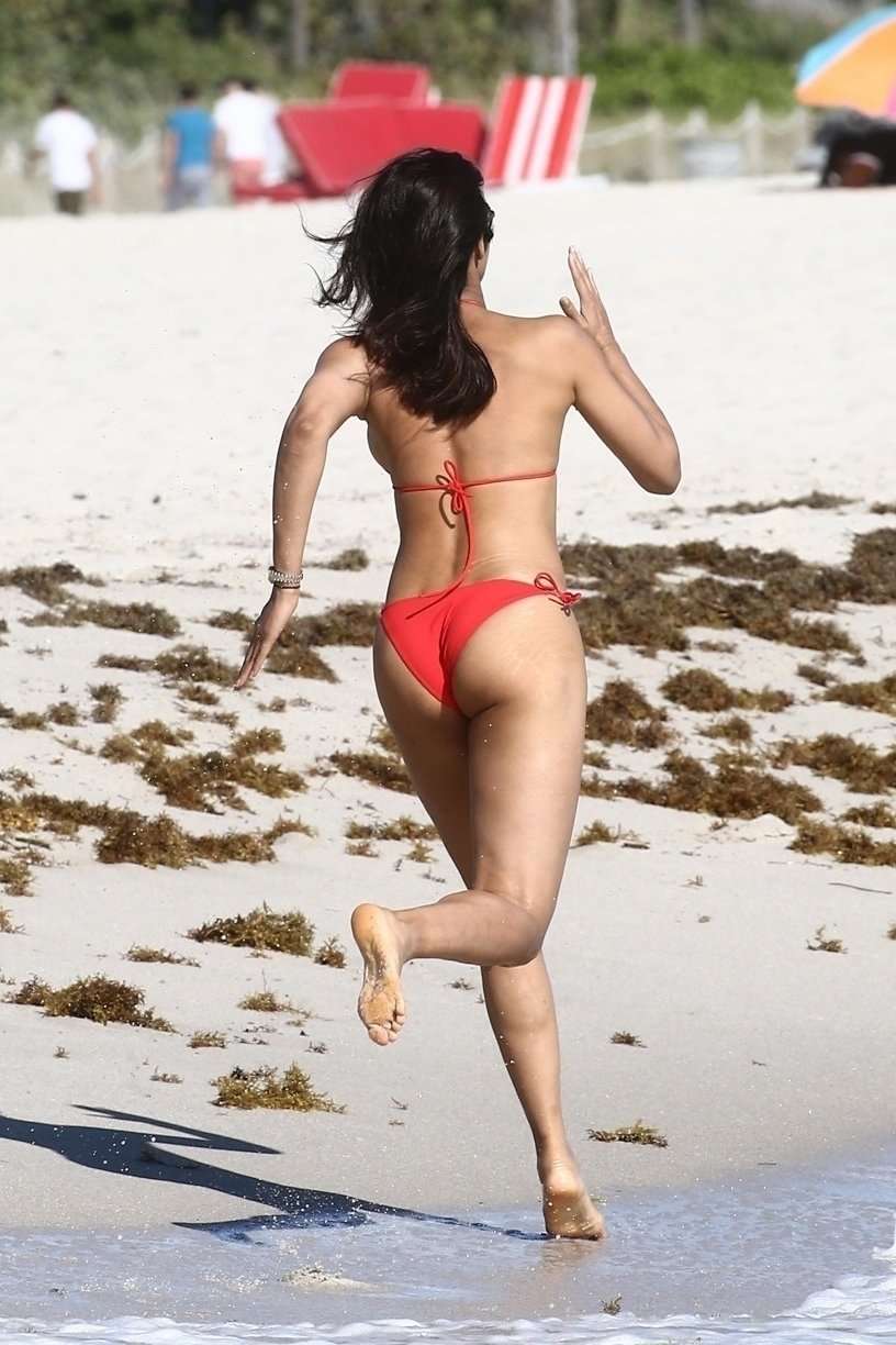 Attached to: Padma Lakshmi in Red Bikini at Beach in Miami